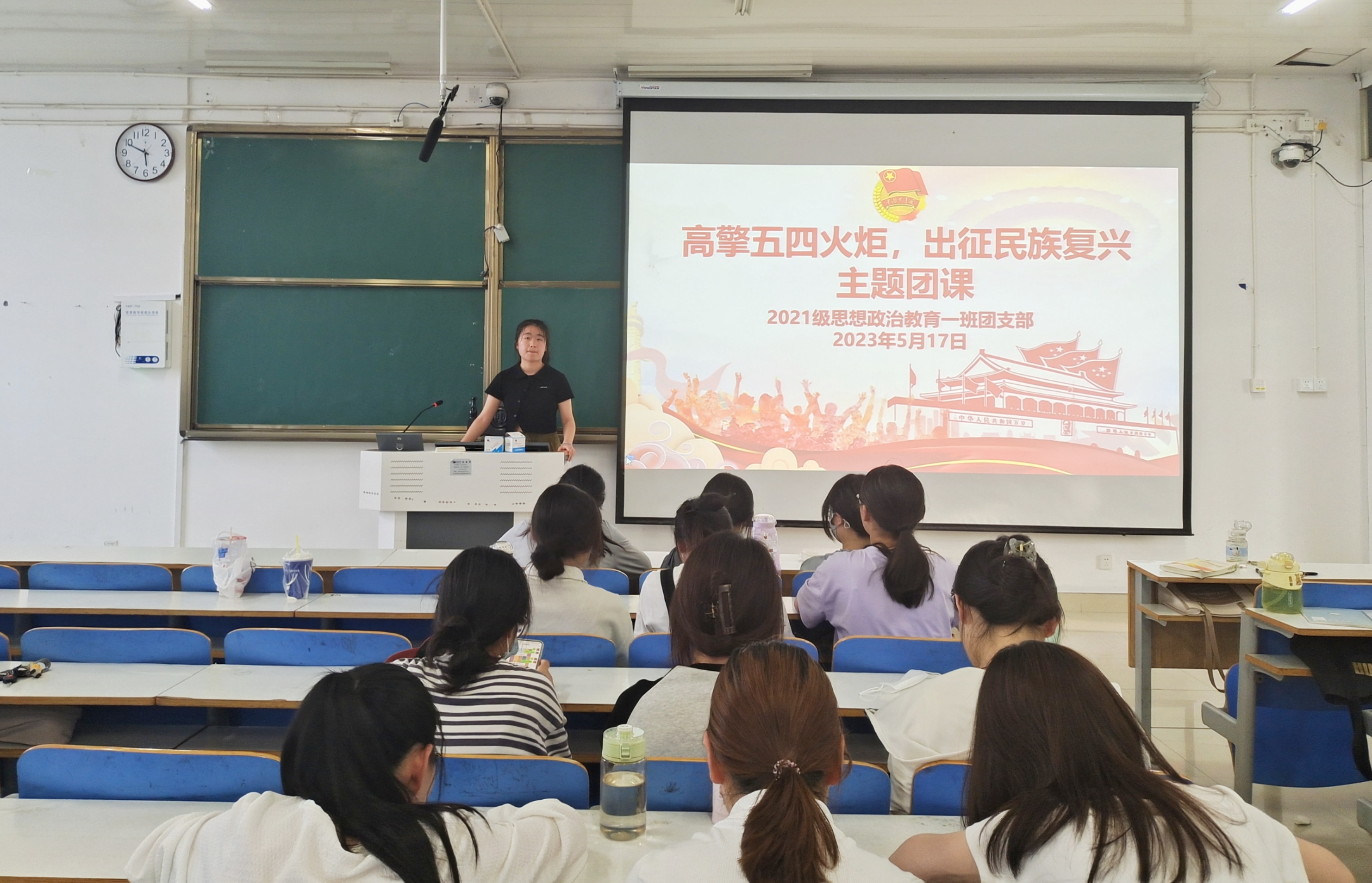 5月17日下午,sjb世俱杯网站2021级思想政治教育一班在社科楼514教室召开“高擎五四火炬,出征民族复兴”主题团课。2021级思想政治教育一班全体团员共同参加了本次团课。团课由副班长雷敏主持。