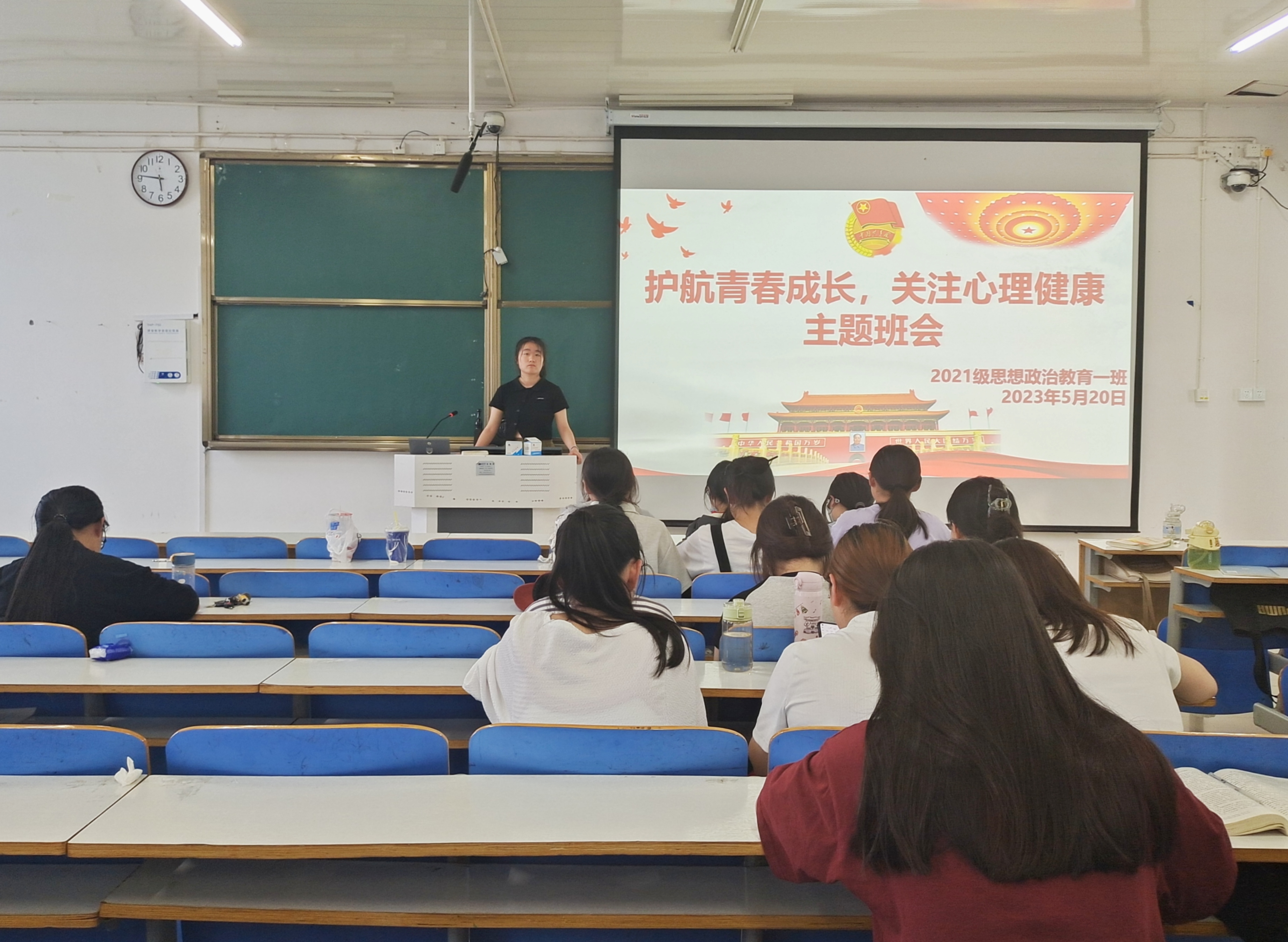 5月20日下午,sjb世俱杯网站2021级思想政治教育一班在社科楼514教室召开“护航青春成长,关注心理健康”主题班会。2021级思想政治教育一班全体成员共同参加了本次班会。班会由副班长雷敏主持。