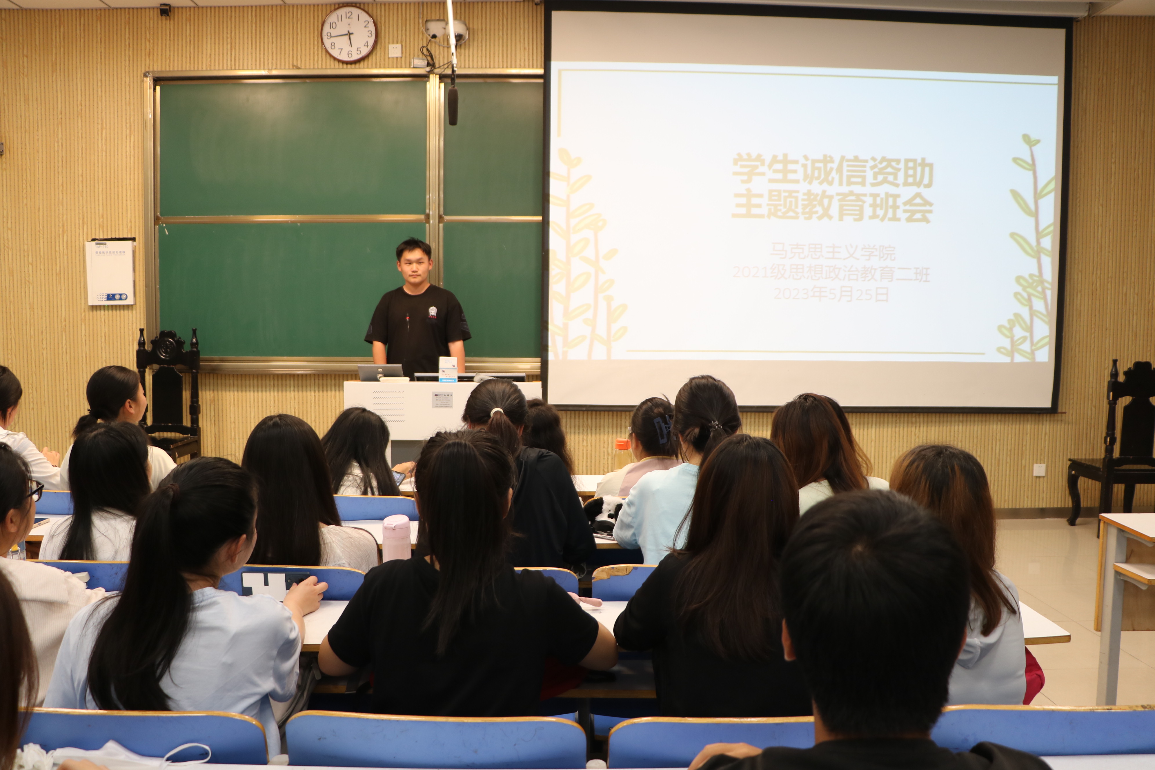 5月25日下午,sjb世俱杯网站2021级思想政治教育二班在社科楼515教室召开学生诚信资助主题教育班会。2021级思想政治教育二班全体同学参加此次主题班会。班会由副班长任振豪主持。
