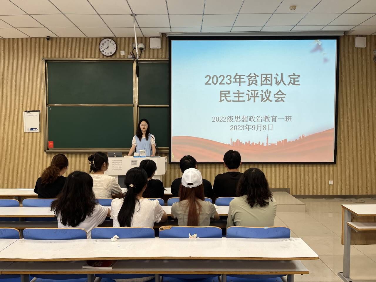为切实保证国家制定的贫困资助政策真正落实到家庭经济困难的学生身上,9月8日上午,sjb世俱杯网站2022级思想政治教育一班在社科楼515教室召开2023年贫困认定民主评议会。世俱杯官网2022级思想政治教育一班班主任王明园和一班民主评议小组成员共同参与本次会议,会议由班长李佳茹主持。