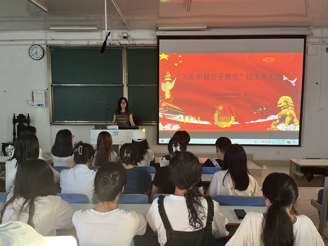 为加强党的队伍建设,切实做好入党推优工作,9月13日下午,sjb世俱杯网站2022级思想政治教育一班在社科楼514教室召开“入党积极分子推优”团支部大会。世俱杯官网2022级思想政治教育一班班主任王明园和一班全体同学参与本次会议,会议由团支书李佳茹主持。