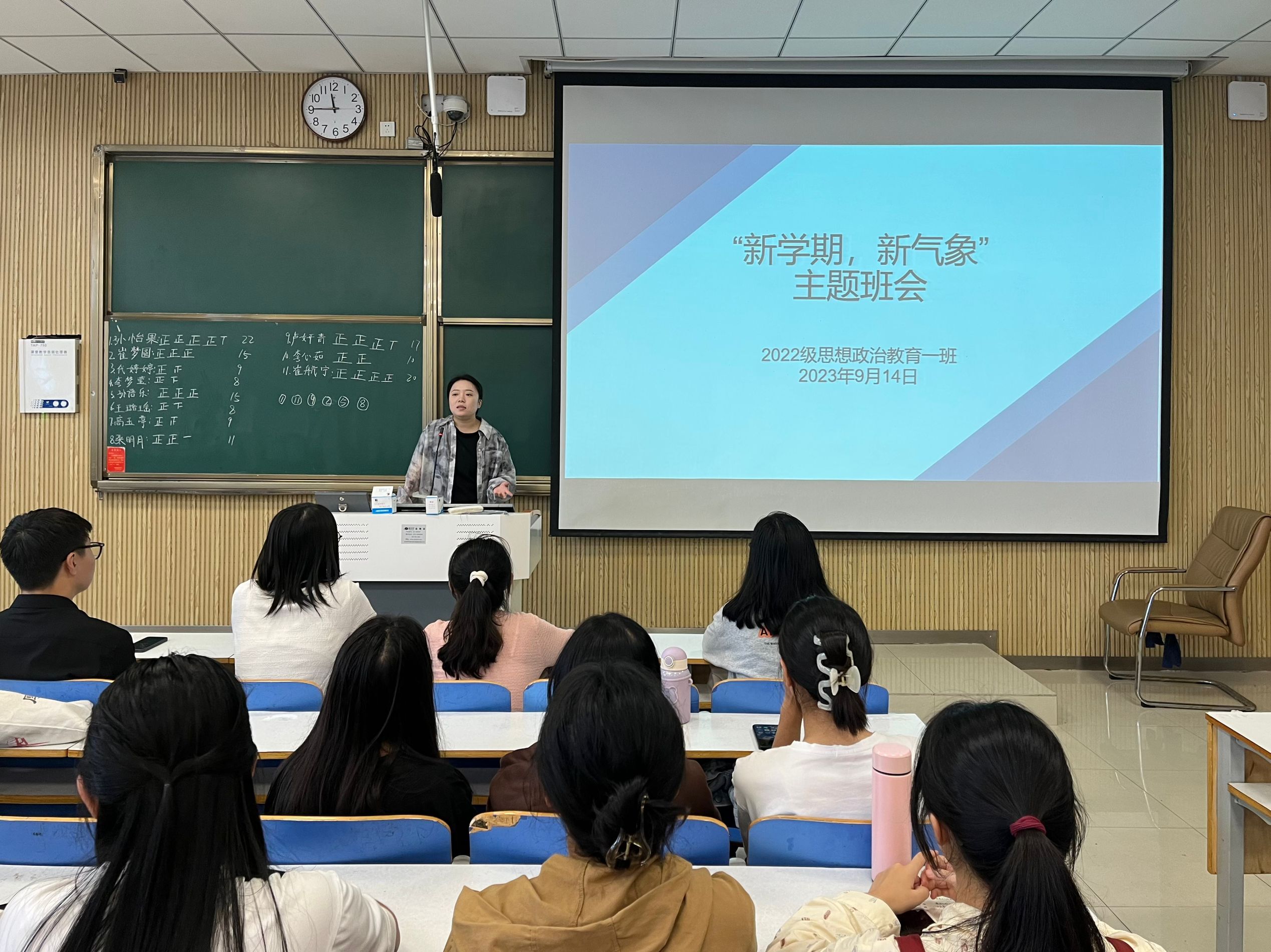 为顺利做好新学期开学准备工作,9月14日上午,sjb世俱杯网站2022级思想政治教育一班在社科楼515教室召开“新学期,新气象”主题班会。世俱杯官网2022级思想政治教育一班班主任王明园和一班全体同学共同参与本次会议,会议由班主任王明园主持。
