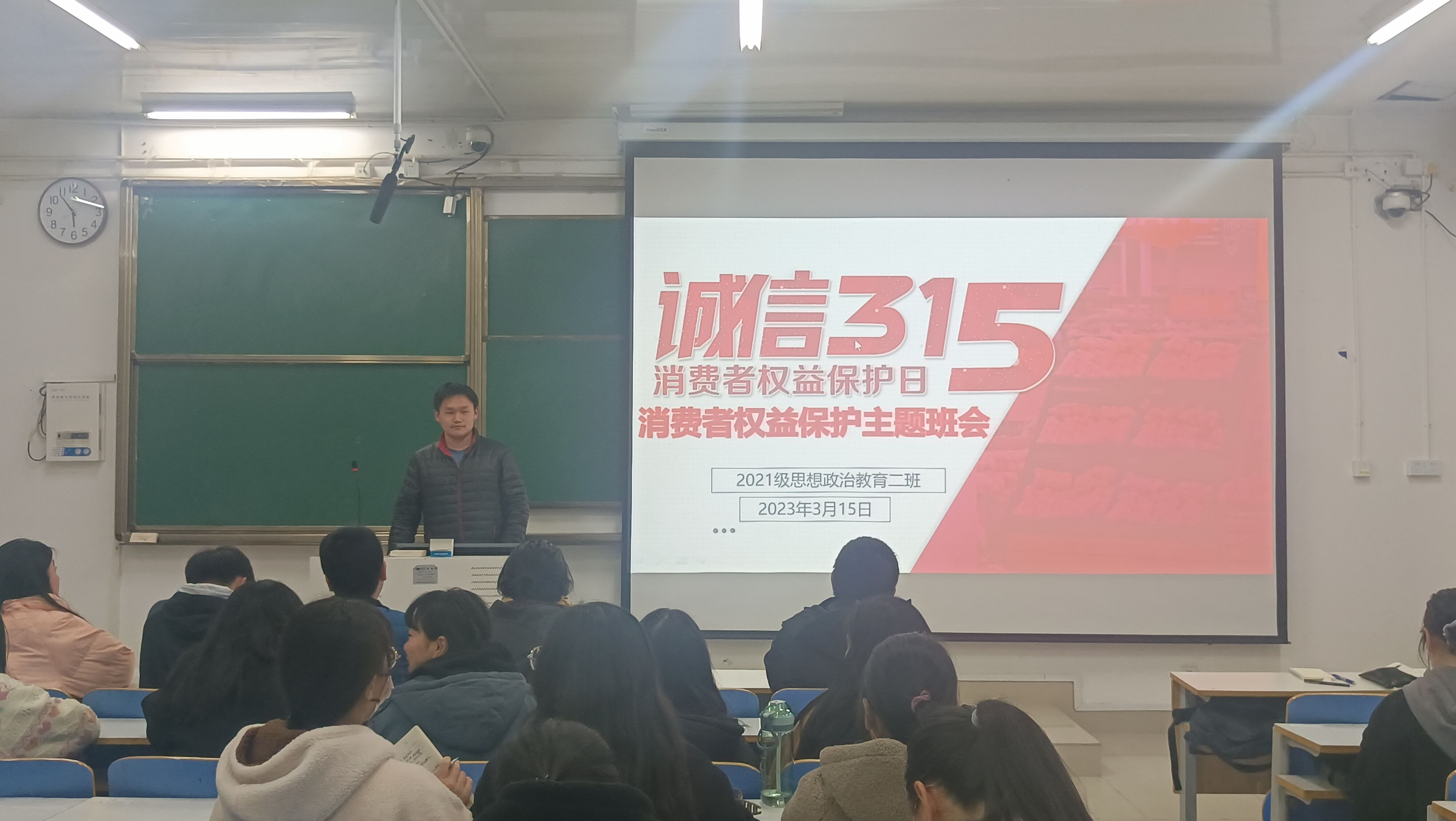 3月15日下午,sjb世俱杯网站2021级思想政治教育二班在社科楼514教室召开消费者权益保护主题班会。2021级思想政治教育二班全体同学参加此次主题班会。班会由副班长任振豪主持。