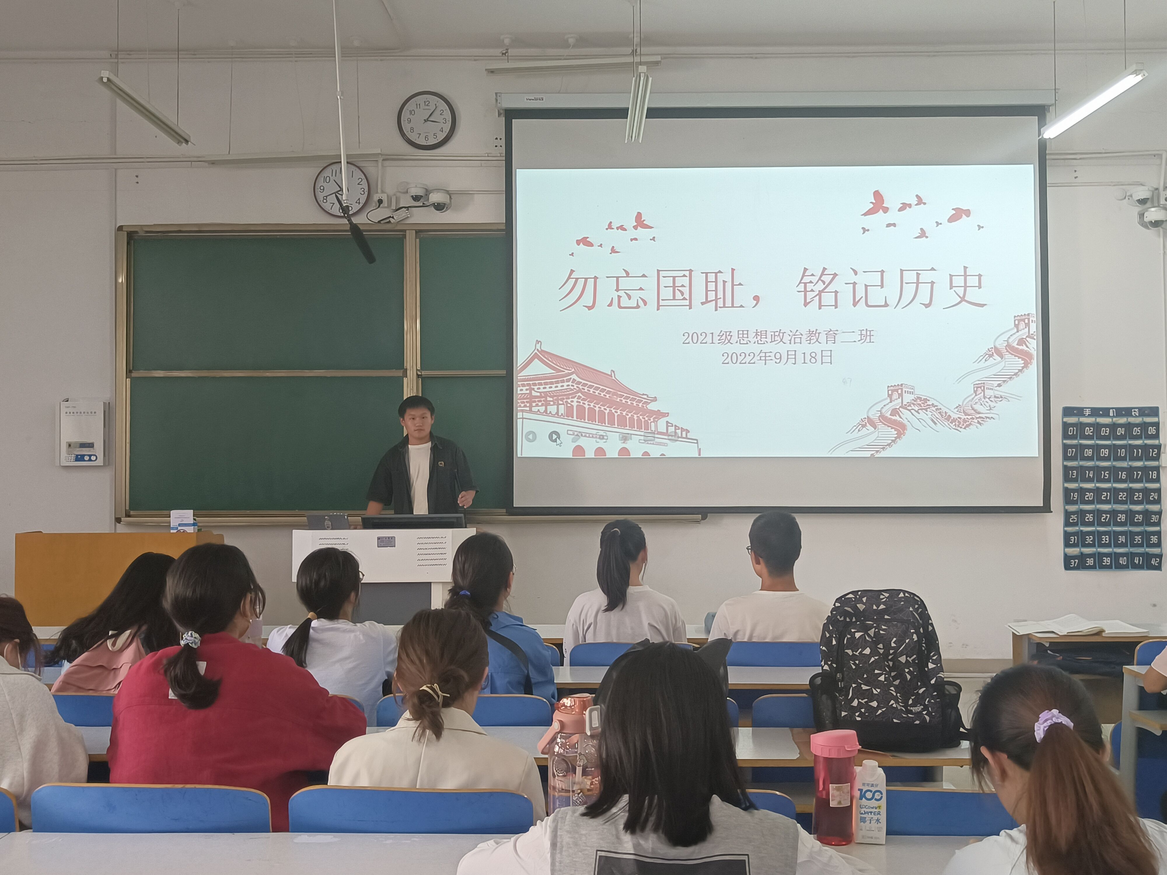9月18日上午,sjb世俱杯网站2021级思想政治教育二班在社科楼514教室召开“勿忘国耻,铭记历史”主题班会。2021级思想政治教育二班全体成员参加此次班会。班会由副班长任振豪主持。