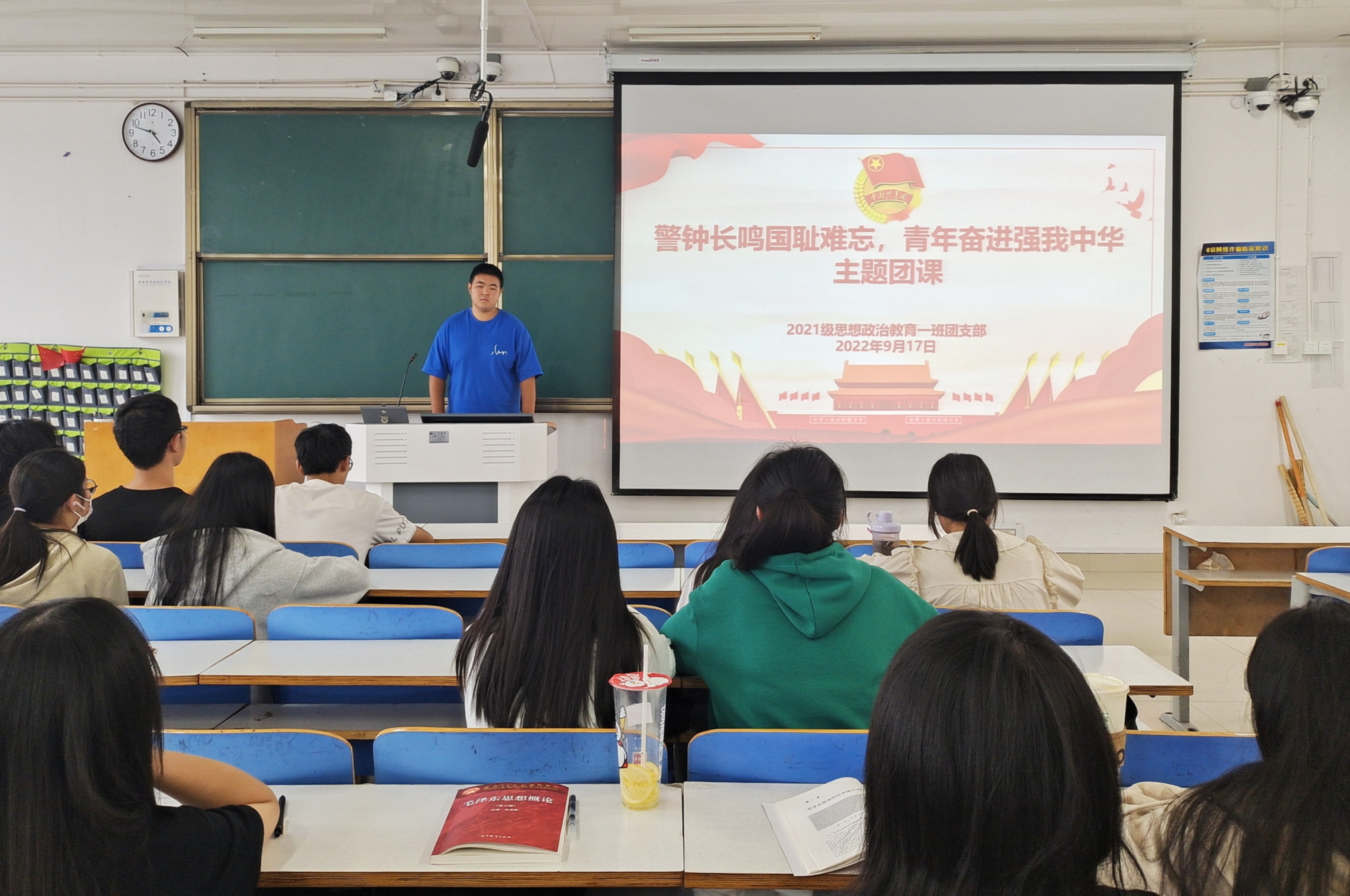 9月17日下午,sjb世俱杯网站2021级思想政治教育一班在社科楼514教室召开“警钟长鸣国耻难忘,青年奋进强我中华”主题团课。2021级思想政治教育一班全体团员共同参加了本次团课,团课由团支书戴翰林主持。
