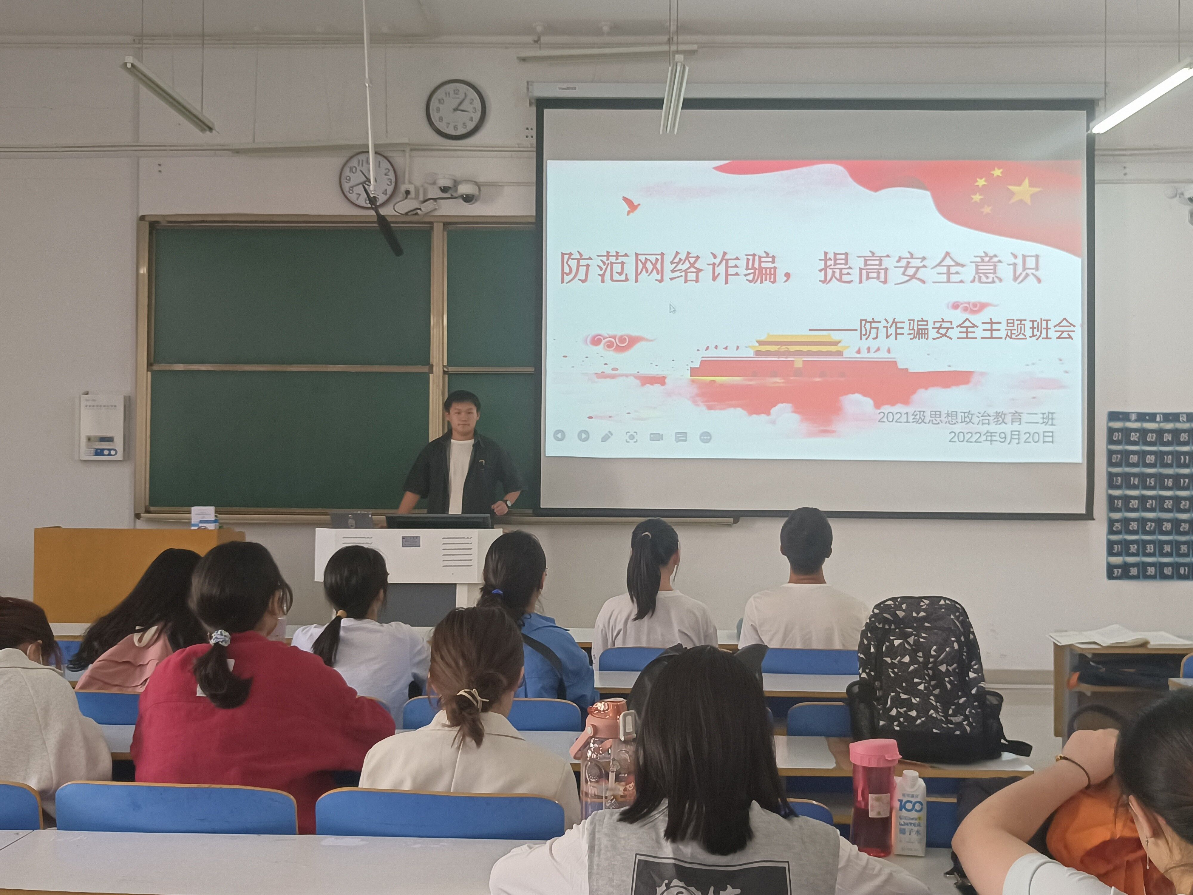 9月20日上午,sjb世俱杯网站2021级思想政治教育二班在社科楼514教室召开“防范网络诈骗,提高安全意识”防诈骗安全主题班会。2021级思想政治教育二班全体成员参加此次班会。班会由副班长任振豪主持。