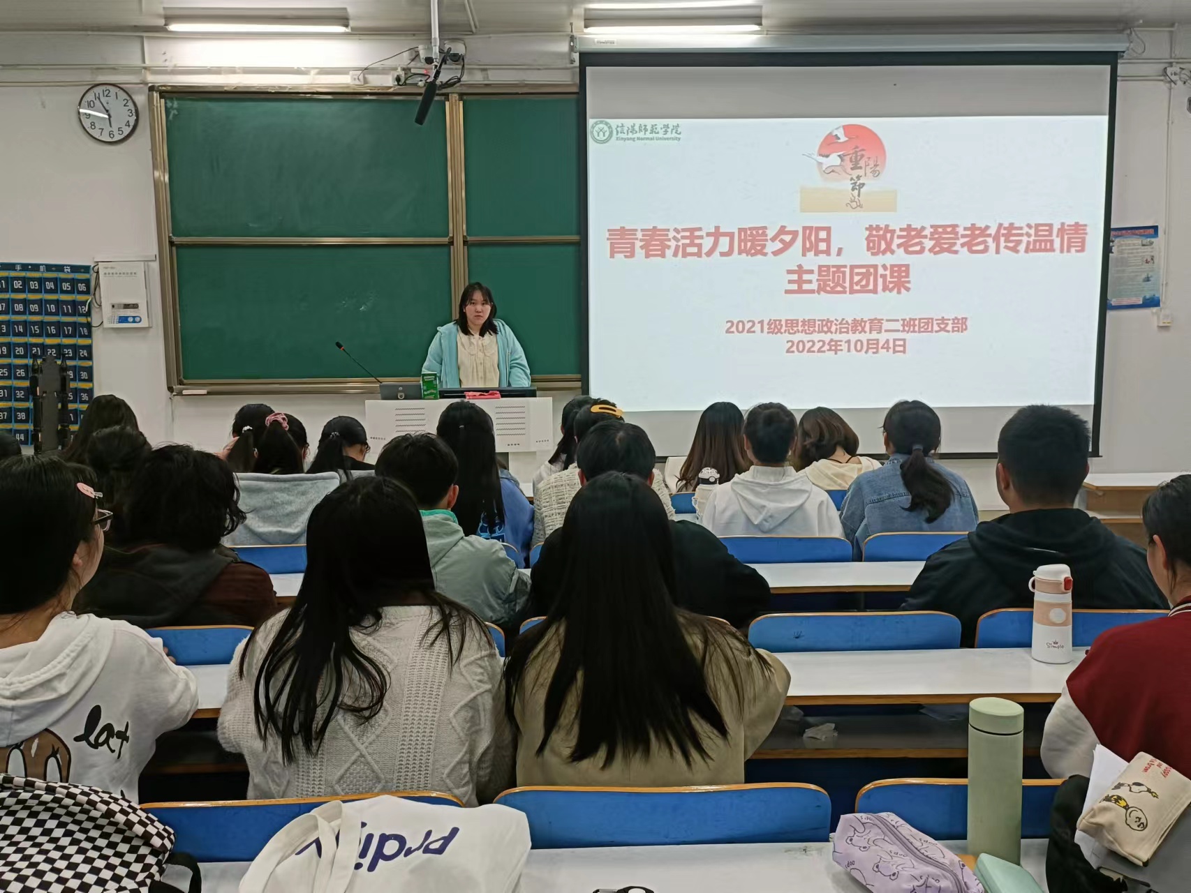 10月4日上午,sjb世俱杯网站2021级思想政治教育二班在社科楼514教室召开“青春活力暖夕阳,敬老爱老传温情”主题团课。2021级思想政治教育二班全体团员参加此次团课。团课由团支书王婧欣主持。