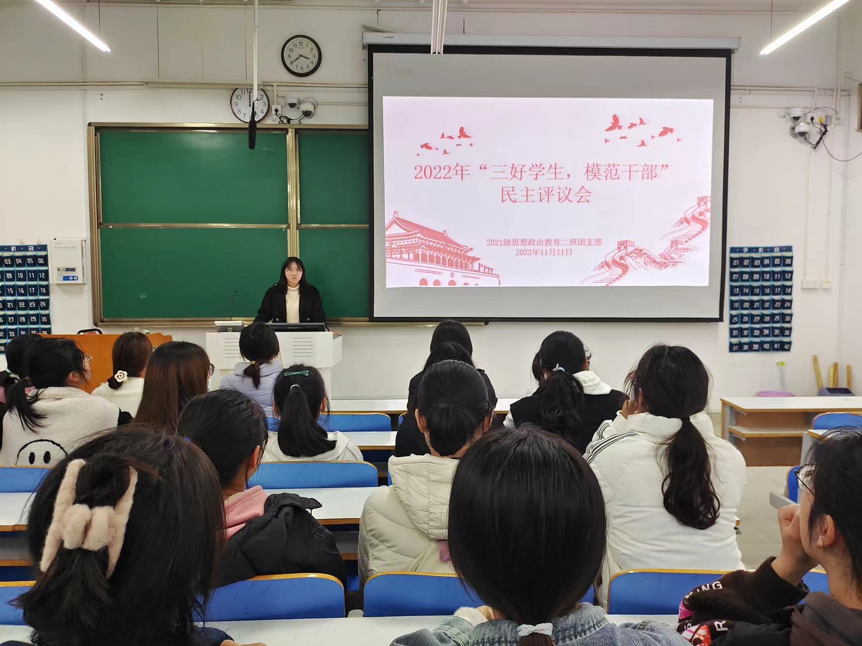 11月11日下午,sjb世俱杯网站2021级思想政治教育二班在社科楼514教室召开2022年“三好学生,模范干部”民主评议会。2021级思想政治教育二班全体成员共同参加此次民主评议会。评议会由团支书王婧欣主持。
