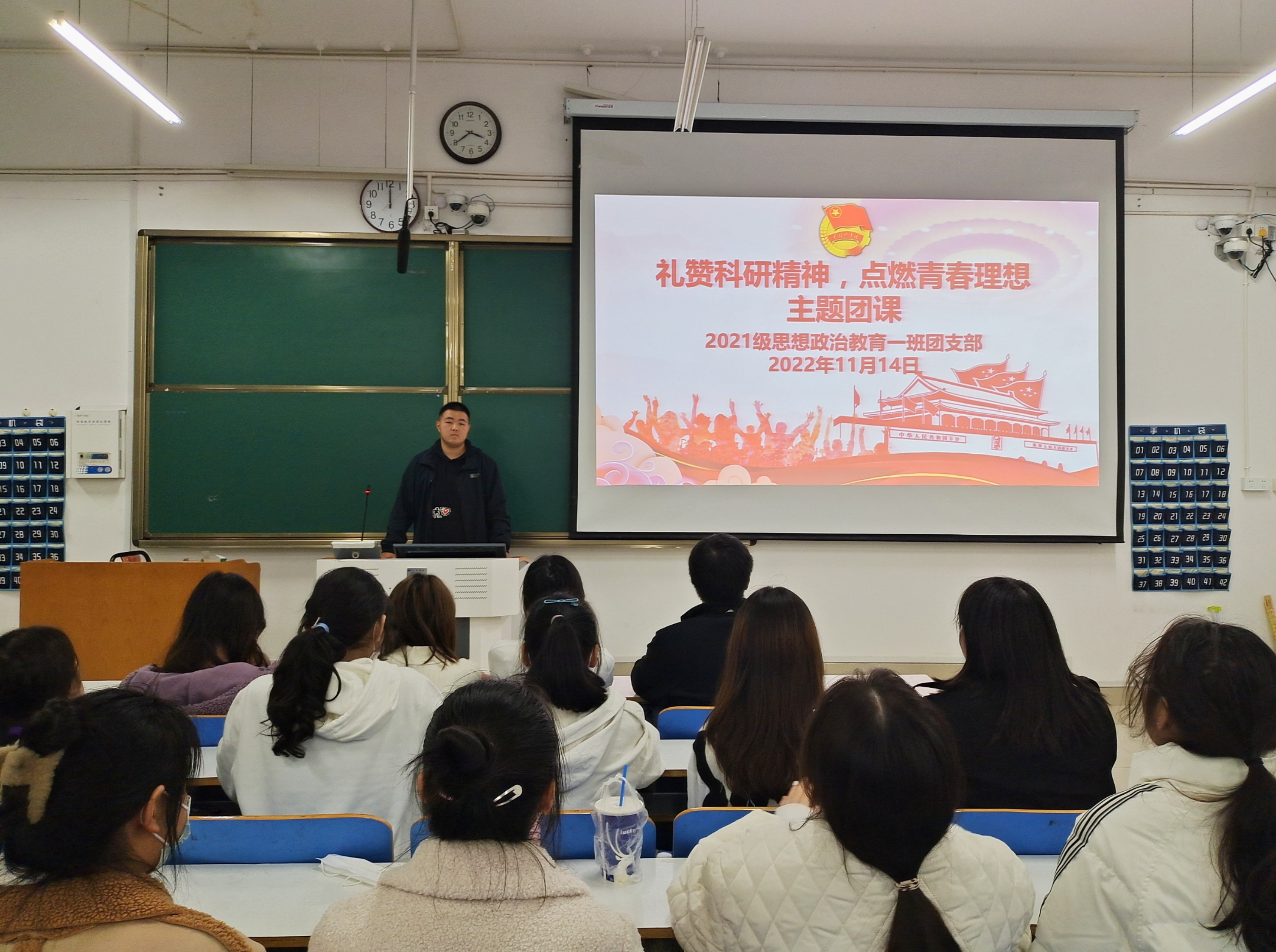 11月14日下午,sjb世俱杯网站2021级思想政治教育一班在社科楼416教室召开“礼赞科研精神,点燃青春理想”主题团课。2021级思想政治教育一班全体团员共同参与本次团课。团课由团支书戴翰林主持。