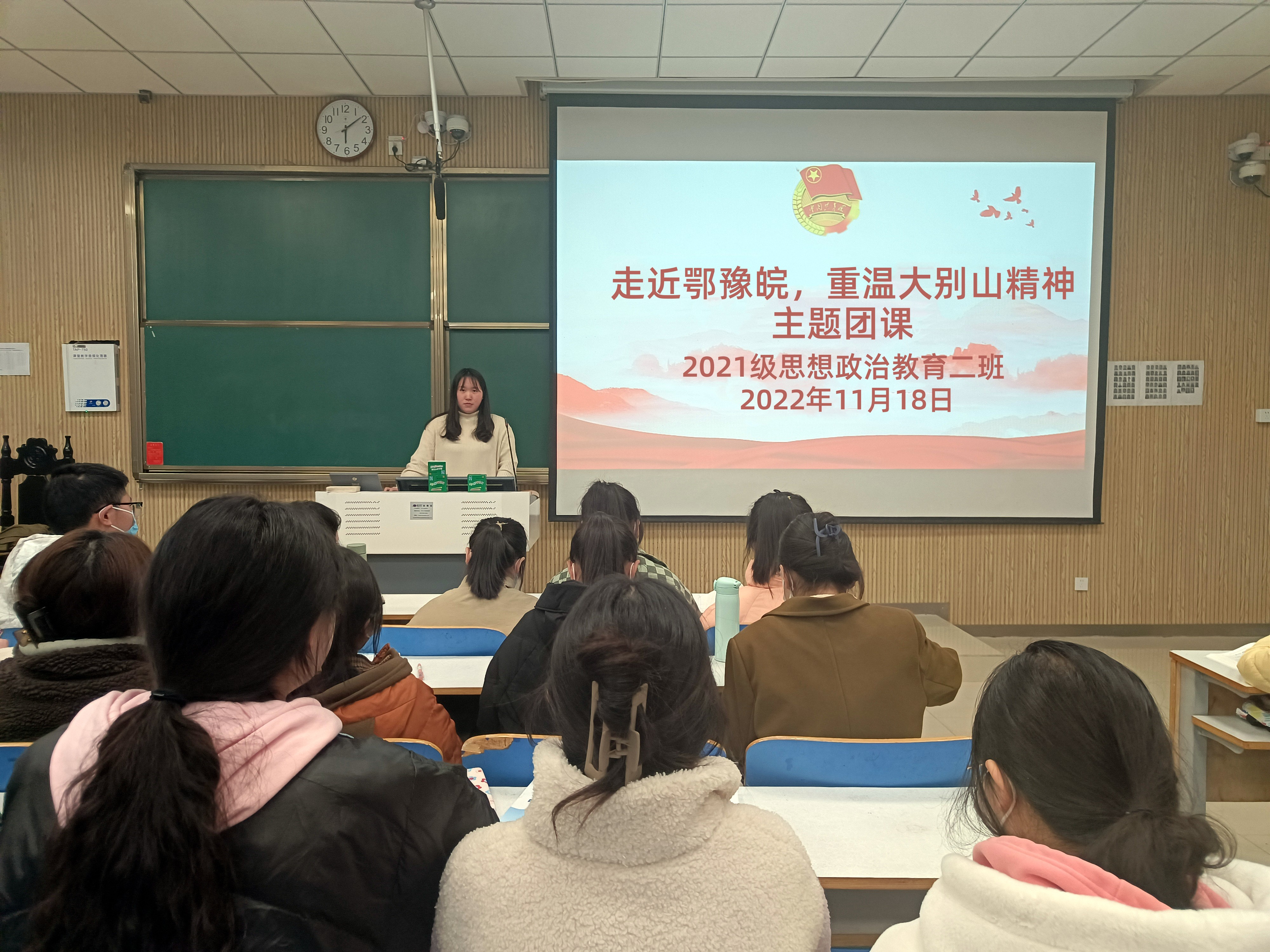 11月18日下午,sjb世俱杯网站2021级思想政治教育二班在社科楼514教室召开“走近鄂豫皖,重温大别山精神”主题团课。2021级思想政治教育二班全体团员共同参加此次团课。团课由团支书王婧欣主持。