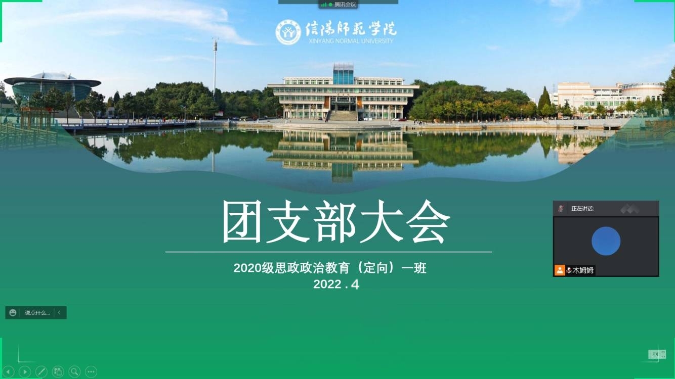 4月20日,sjb世俱杯网站2020级思想政治教育定向一班通过腾讯会议召开团支部大会。2020级思想政治教育定向一班全体同学共同参会。