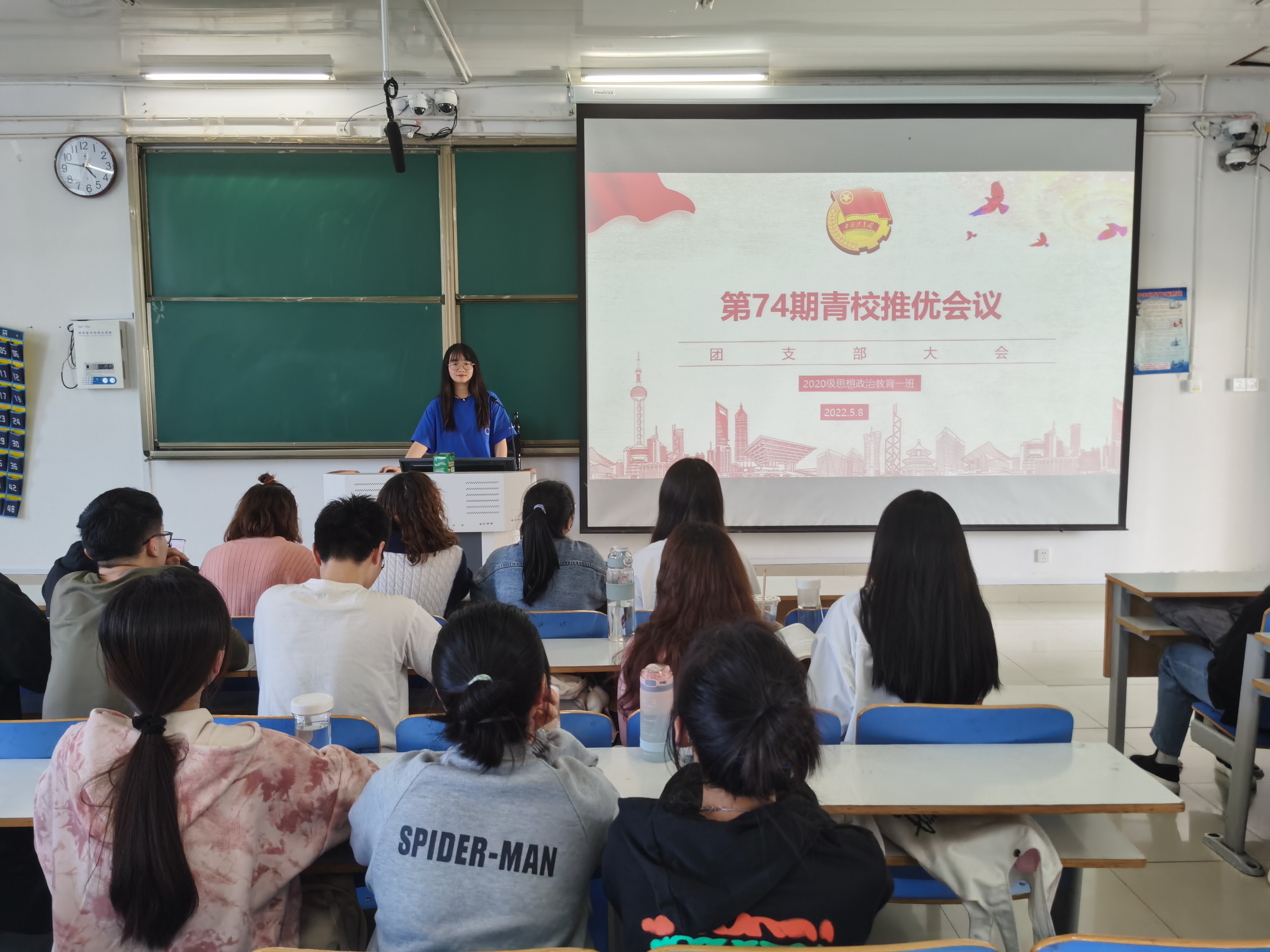 5月8日下午,sjb世俱杯网站2020级思想政治教育一班在社科楼514教室召开“第74期青校推优”团支部大会。2020级思想政治教育一班全体团员参加本次推优会议,大会由团支书卢茜雨主持。