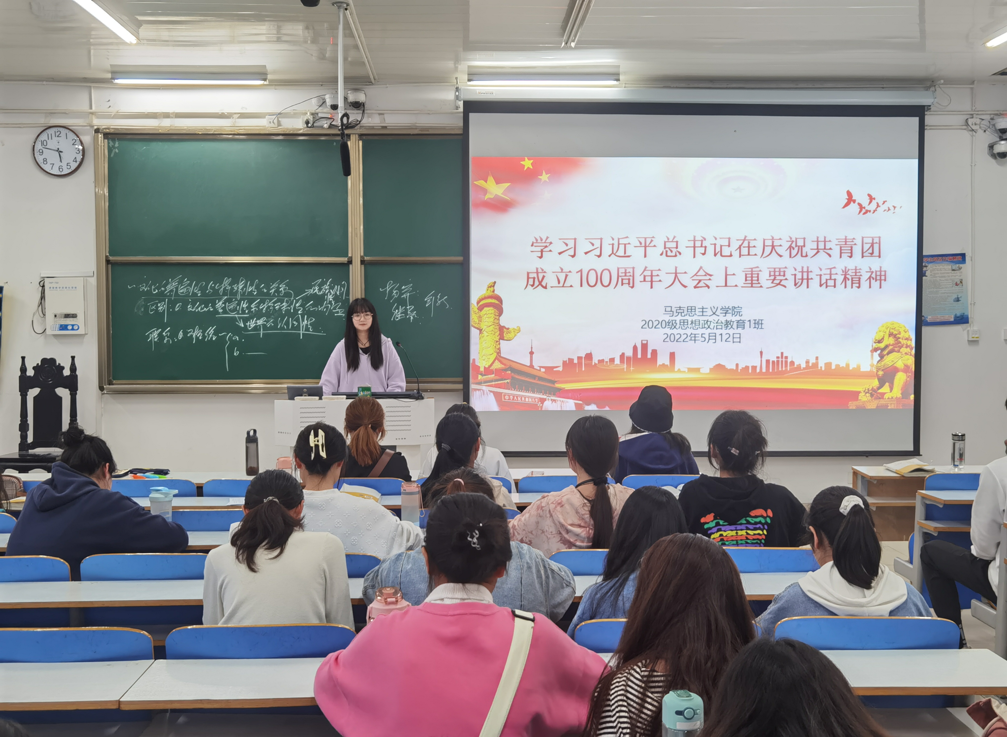 5月12日下午,sjb世俱杯网站2020级思想政治教育一班在社科楼514教室组织学习“习近平总书记在庆祝共青团成立100周年大会上重要讲话”精神,会议由团支书卢茜雨主持。