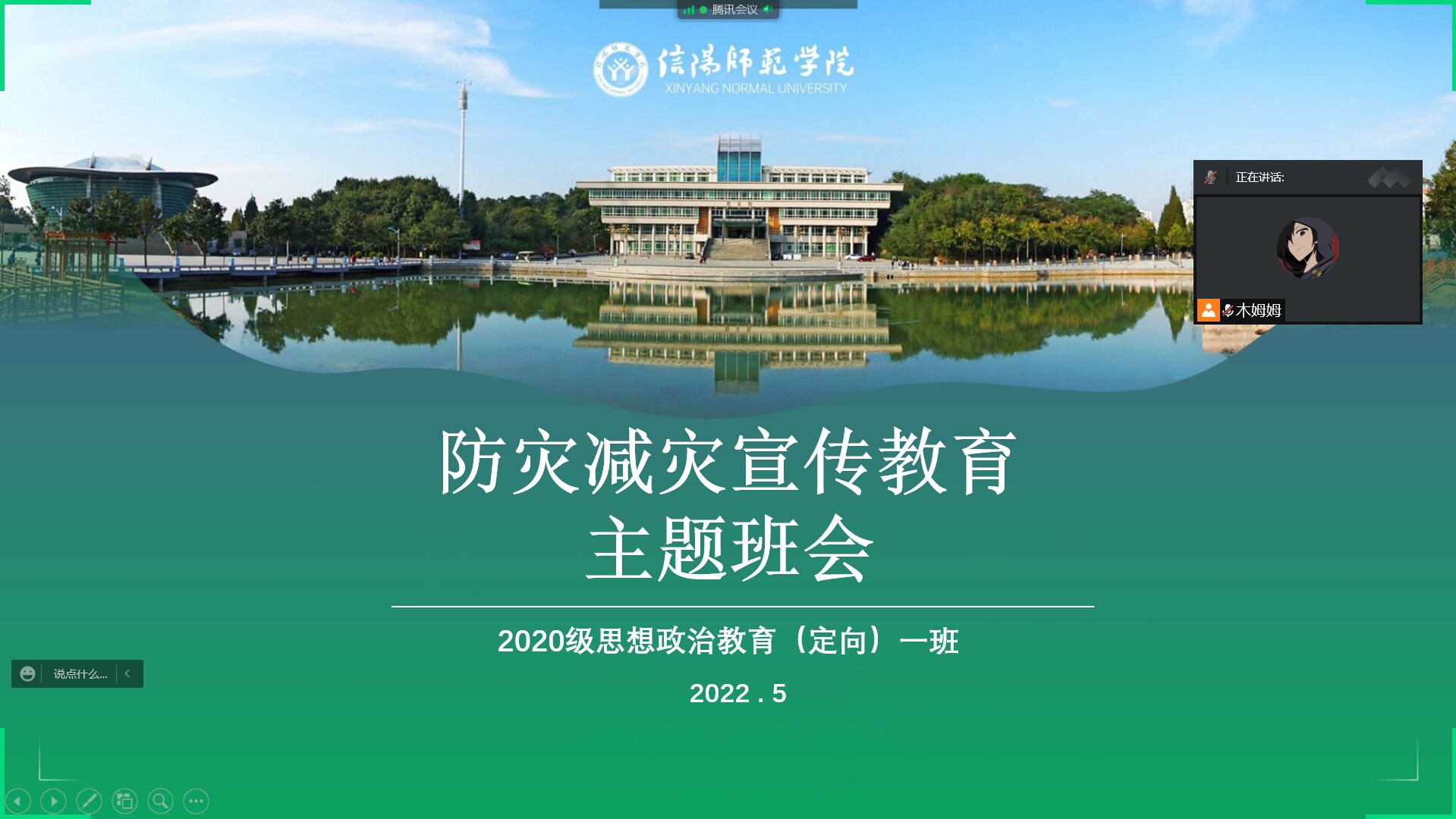 5月17日晚,sjb世俱杯网站2020级思想政治教育定向一班以线上的方式开展了以“防灾减灾宣传教育”为主题的班会。