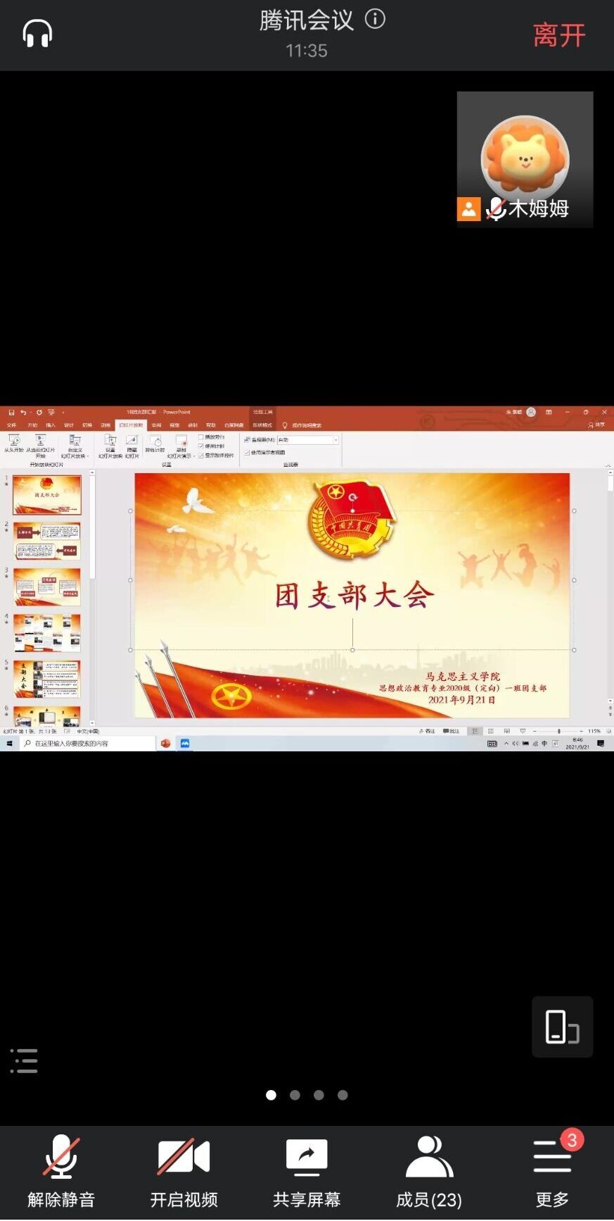 9月21日上午,sjb世俱杯网站2020级思想政治教育(定向)一班通过腾讯会议在线上顺利举行了团支部大会。2020级思想政治教育(定向)一班全体学生聆听了此次会议。