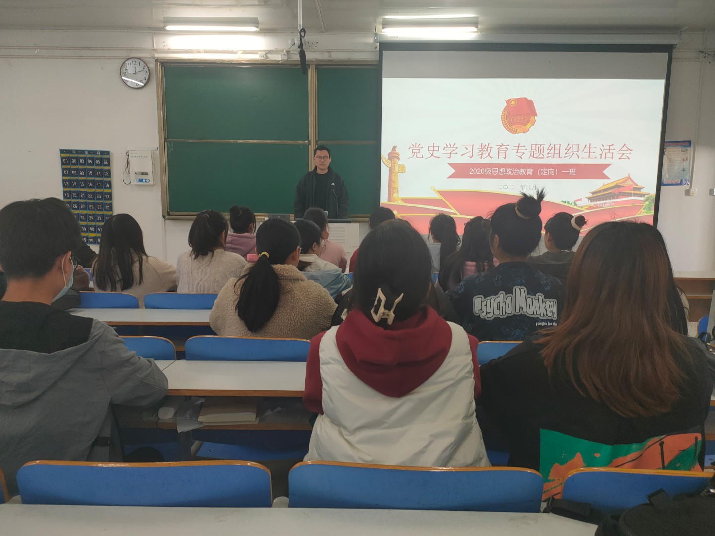 11月11日上午,sjb世俱杯网站2020级思想政治教育定向一班党史学习教育专题组织生活会在社科楼514教室顺利召开。辅导员曹栋及2020级思想政治教育定向一班全体学生共同参加本次会议。