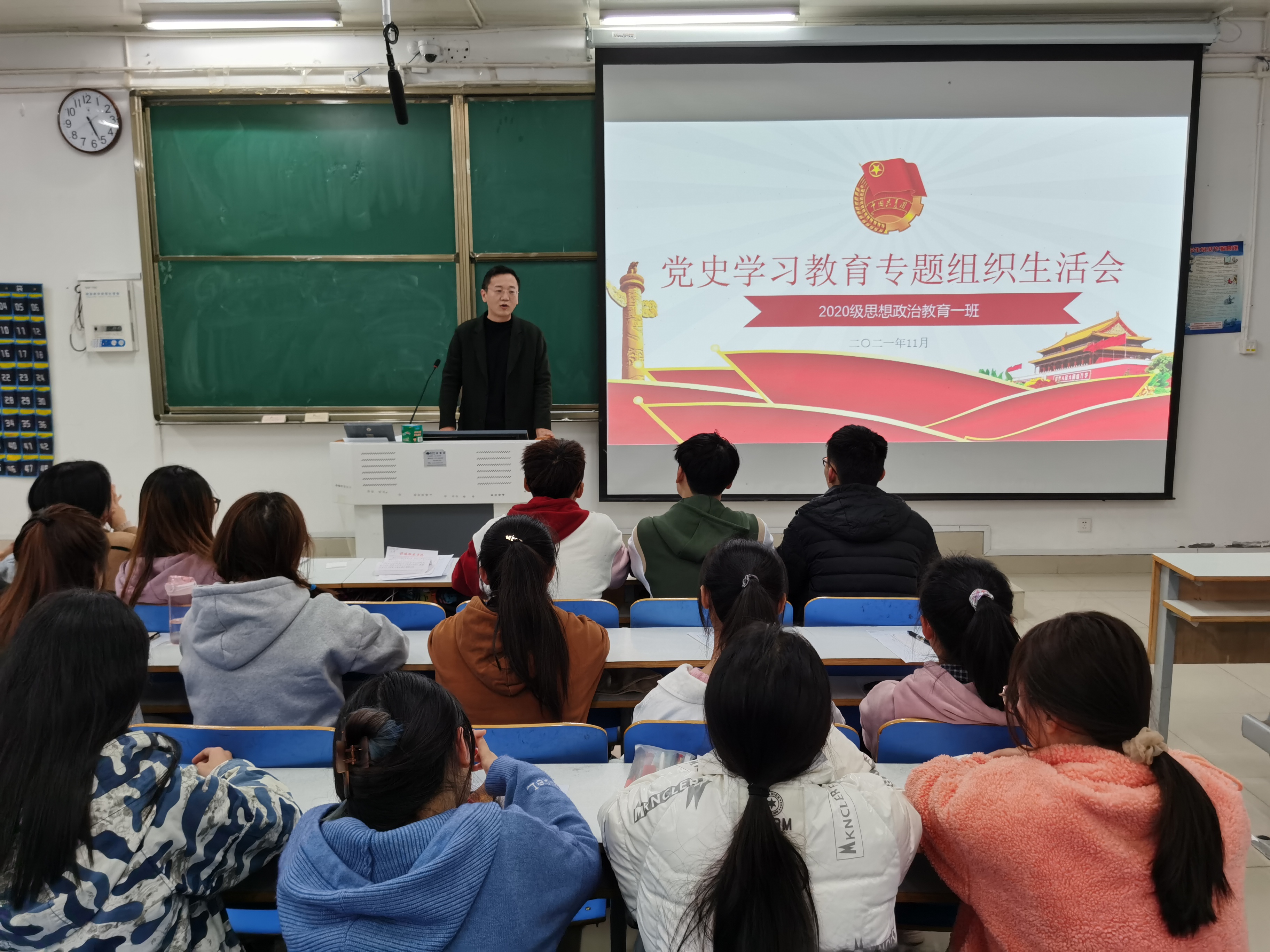 11月14日下午,sjb世俱杯网站2020级思想政治教育一班在社科楼514教室召开党史学习教育专题组织生活会。辅导员曹栋及2020级思想政治教育一班全体团员参加了本次会议,会议由团支书卢茜雨主持。
