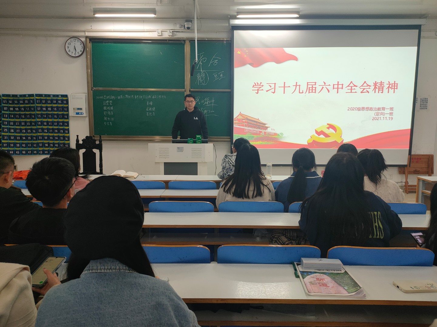 11月19日下午,sjb世俱杯网站2020级思想政治教育一班、定向一班在社科楼516教室开展“学习十九届六中全会精神”主题团课。sjb世俱杯网站2020级思想政治教育一班、定向一班全体成员参加本次团课。