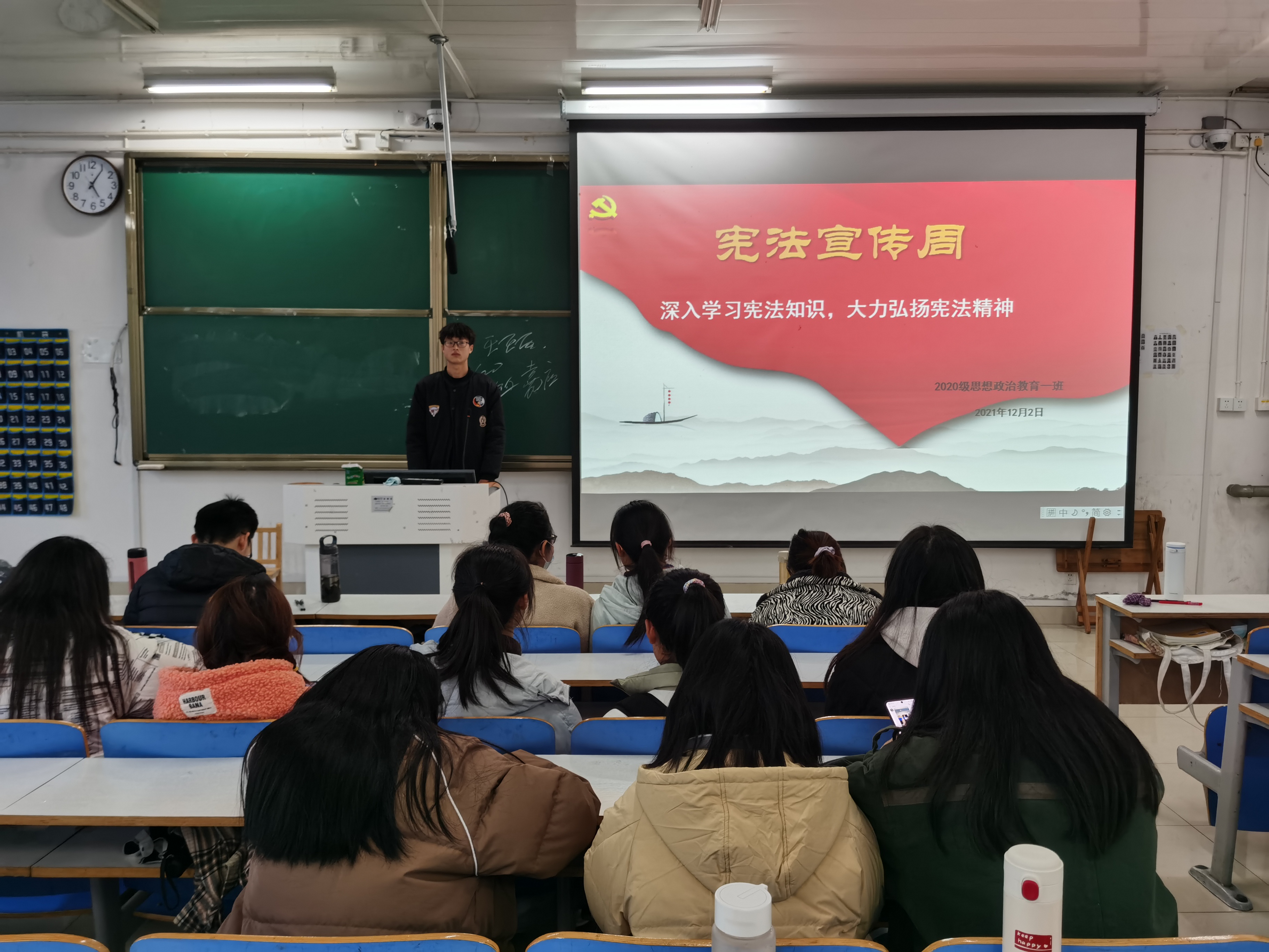 为增强同学们的法治观念,培养法治思维,12月2日下午,sjb世俱杯网站2020级思想政治教育一班在社科楼516教室召开“深入学习宪法知识,大力弘扬宪法精神”主题班会。