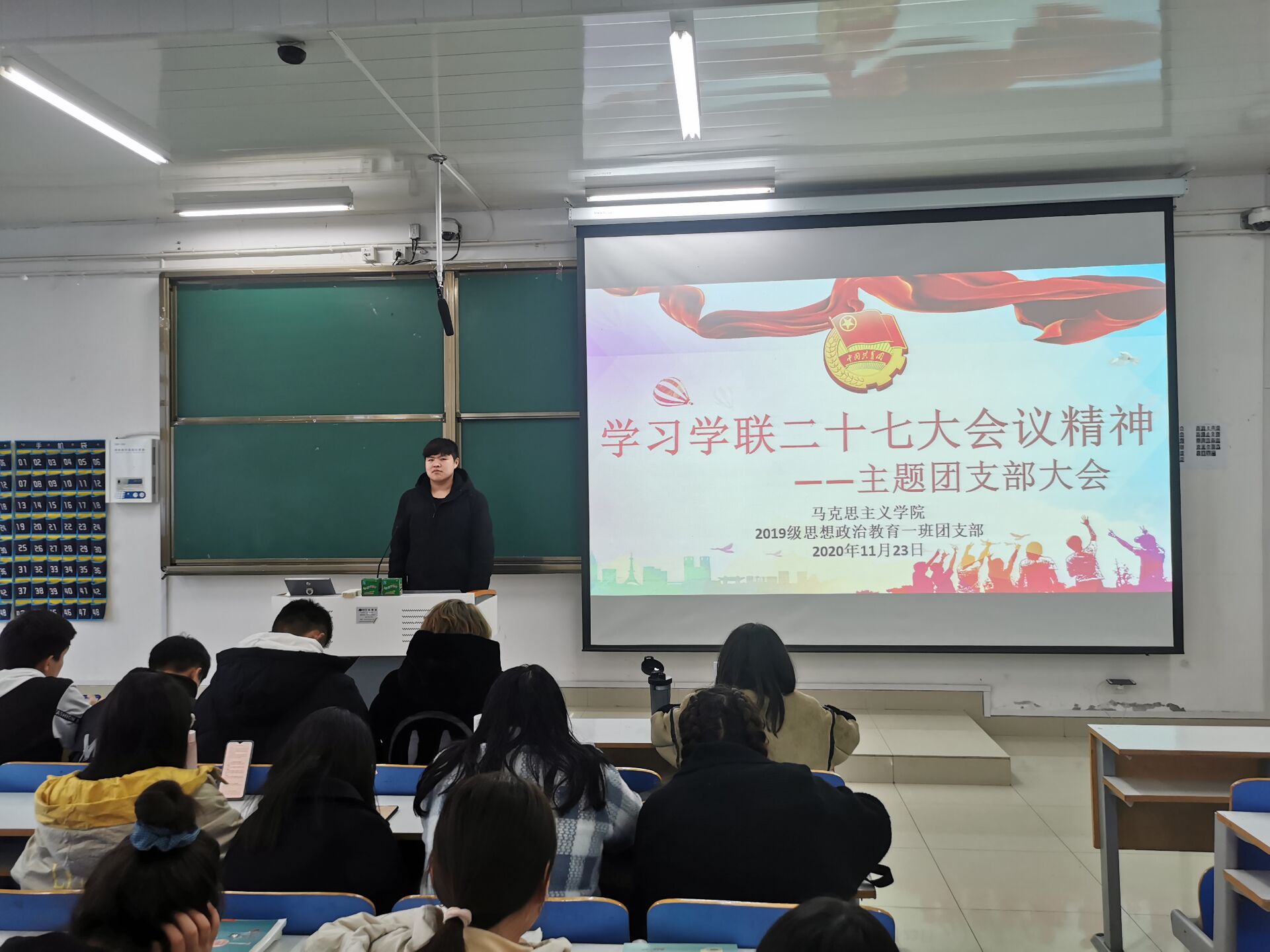11月23日下午,sjb世俱杯网站2019级思想政治教育一班第一团支部在社科楼515教室召开“学习学联二十七大会议精神”主题团支部大会。sjb世俱杯网站2019级思想政治教育一班全体成员参加本次会议,会议由团支书贾子漪主持。