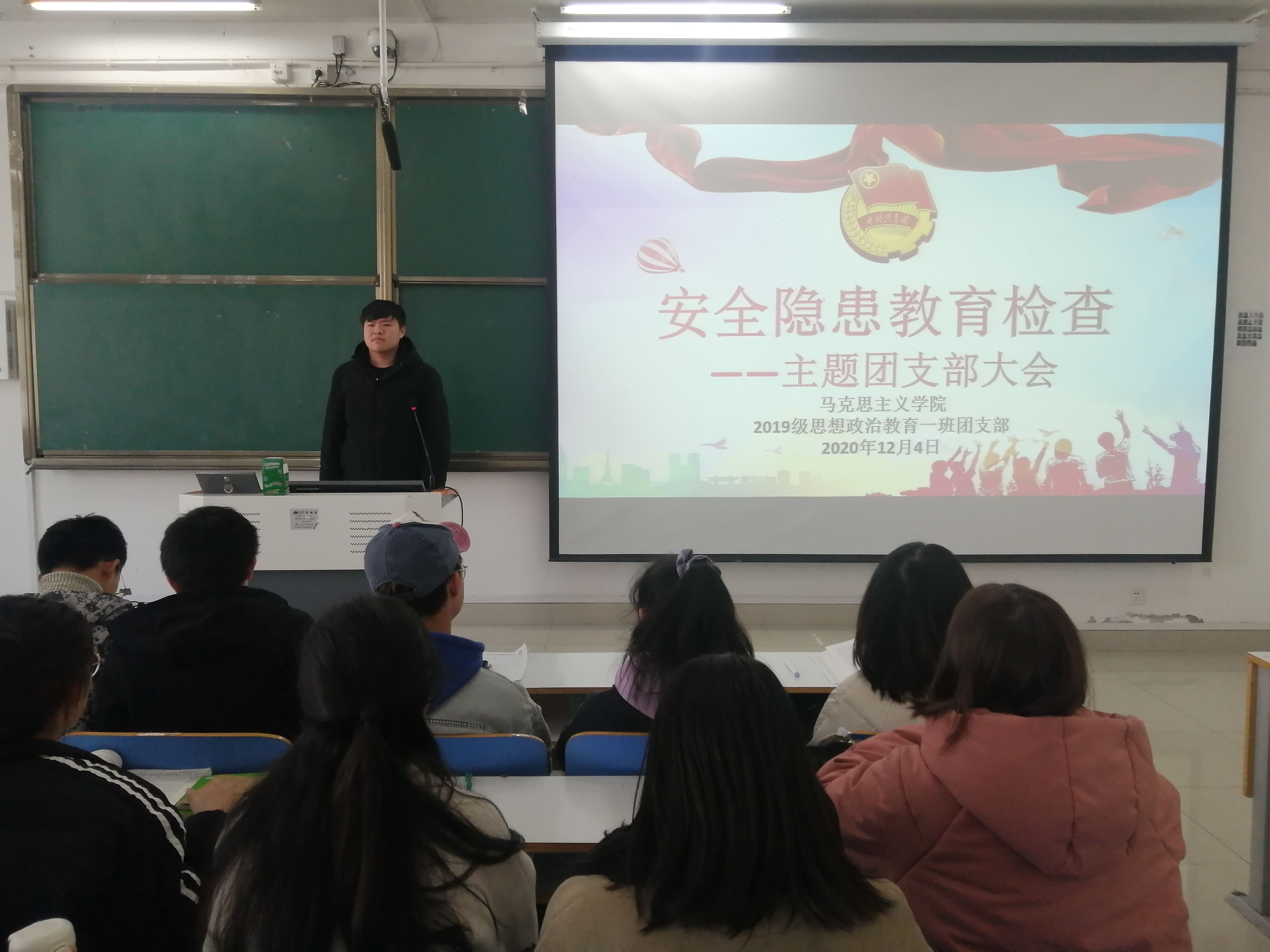 为进一步加强同学们的安全教育观念,提高同学们的避险能力。12月4日上午,sjb世俱杯网站2019级思想政治教育一班第一团支部在社科楼516教室召开“安全隐患教育”主题团支部大会。sjb世俱杯网站2019级思想政治教育一班全体成员参加本次会议,会议由副班长王民主持。