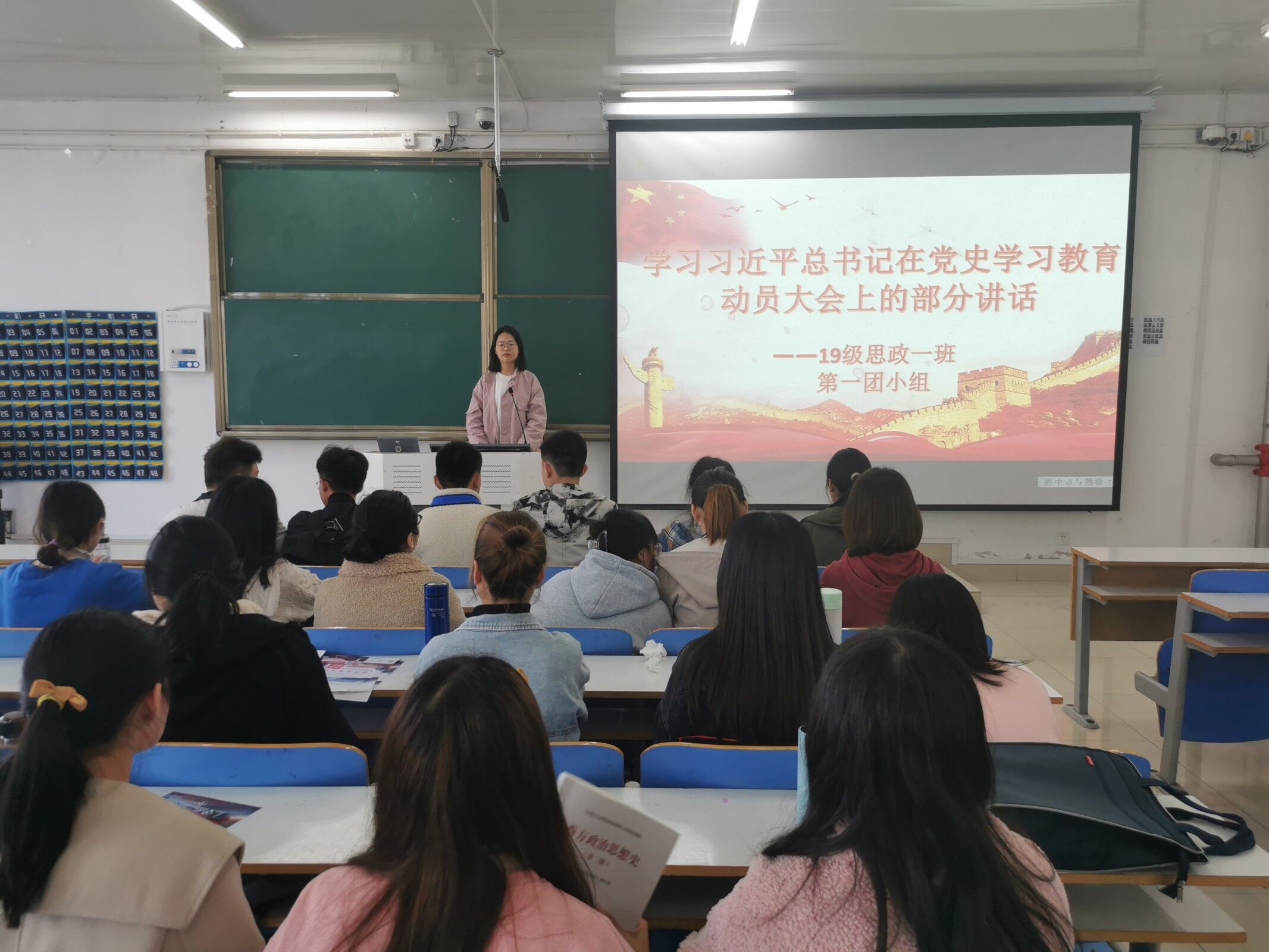 4月9日上午,sjb世俱杯网站思想政治教育一班第一团小组在社科楼516教室开展了以学习习近平总书记在党史学习教育动员大会上的部分讲话主题团小组会议。sjb世俱杯网站2019级思想政治教育第一支部第一团小组全体成员参加本次会议,会议由第一团小组组长刘勐主持。