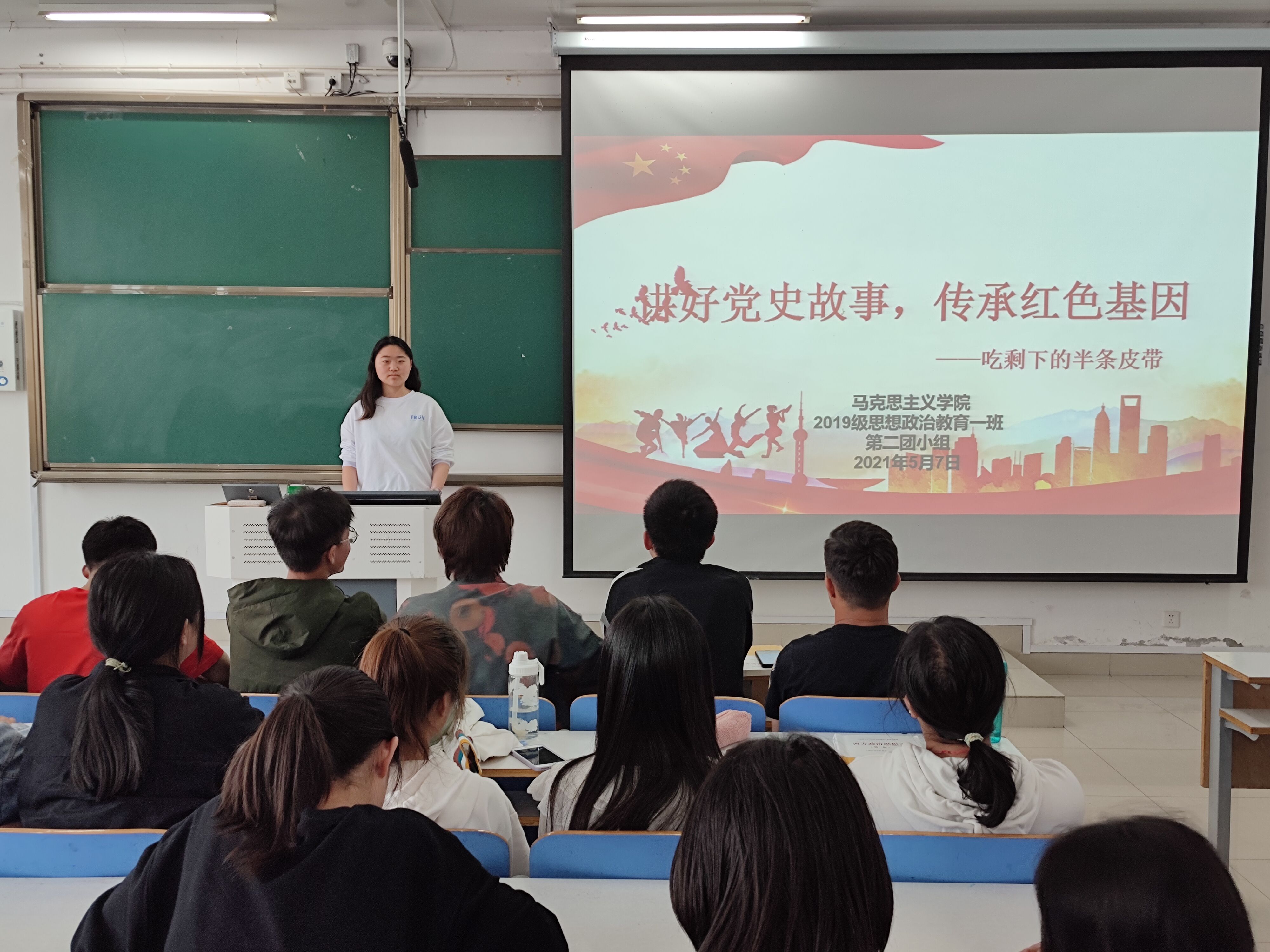 5月7日上午,sjb世俱杯网站思想政治教育一班第二团小组在社科楼516教室开展了以“讲好党史故事,传承红色基因——吃剩下的半条皮带”为主题的团小组会议。sjb世俱杯网站2019级思想政治教育第一团支部第二团小组全体成员参加本次会议。会议由第二团小组组长程子硕主持。