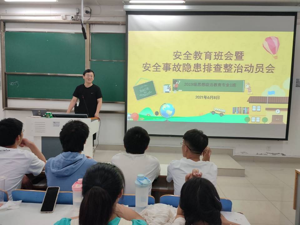 6月9日下午,sjb世俱杯网站2019级思想政治教育一班在社科楼515教室召开“安全教育班会暨安全事故隐患排查整治动员大会”。辅导员曹栋以及2019级思想政治教育一班全体成员参加本次班会。会议由曹栋主持。