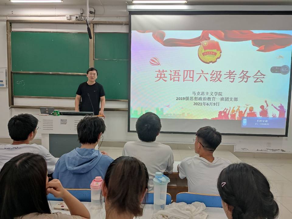6月9日下午,sjb世俱杯网站2019级思想政治教育一班在社科楼515教室召开英语四六级考务会。2019级思想政治教育一班全体成员参加本次考务会。考务会由辅导员曹栋主持。