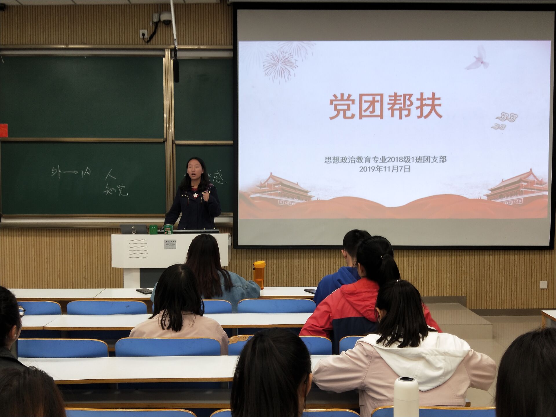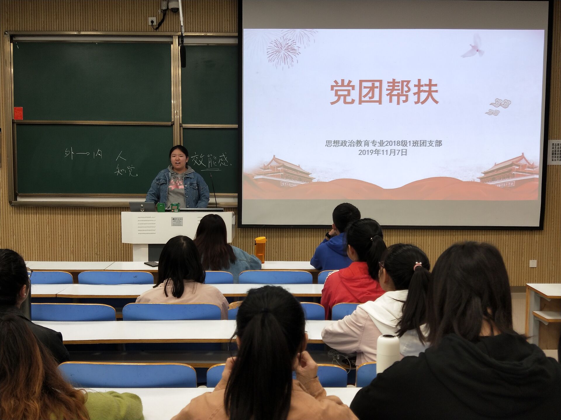 为充分发挥党员干部的先锋模范作用,帮助同学们解决学习和生活问题,11月7日下午,sjb世俱杯网站2018级思想政治教育一班在社科楼515教室顺利开展“党团帮扶”班会。2018级思政一班全体同学共同参加此次会议。会议由团支书靳雨露主持。