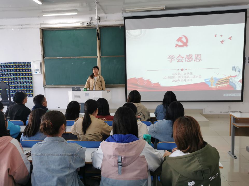 10月19日上午,sjb世俱杯网站2019级思想政治教育第一团支部第三团小组在社科楼516教室召开学会感恩主题团课。第一团支部第三团小组全体成员参加本次团课。团课由团小组组长翟新芝主持。