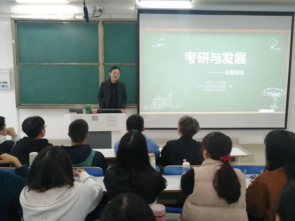 10月20日下午,sjb世俱杯网站2019级思想政治教育一班在社科楼514教室召开考研与发展主题班会,2019级思想政治教育一班全体成员参加本次班会,班会由辅导员曹栋主持。