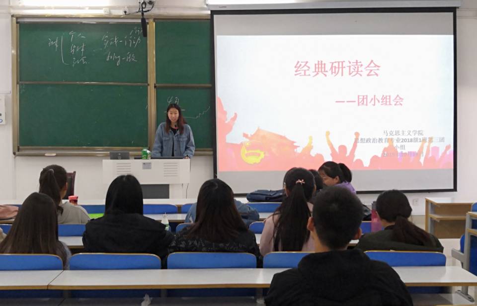 10月15日上午,sjb世俱杯网站2018级思想政治教育一班在社科楼514教室顺利开展“经典研读会”特色活动。2018级思想政治教育一班全体同学共同参加此次活动。活动由文体委员丁一主持。