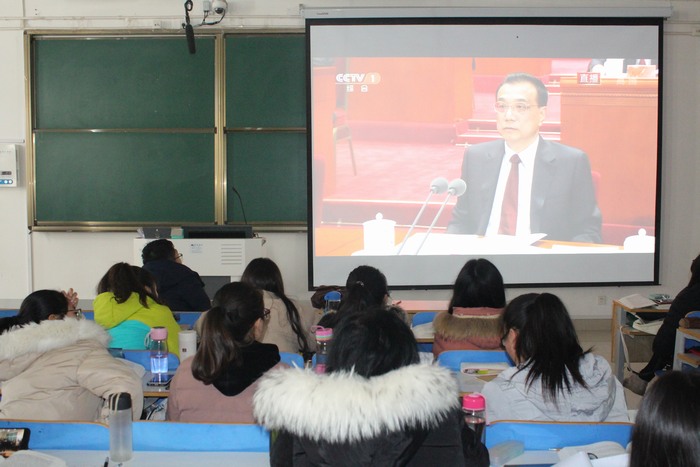 12月18日上午,庆祝改革开放40周年大会在北京人民大会堂隆重举行,为使同学们深入理解改革开放对于中国的伟大意义,2017级思想政治教育一班组织全体同学在社科楼514教室一同观看庆祝改革开放40周年大会直播。