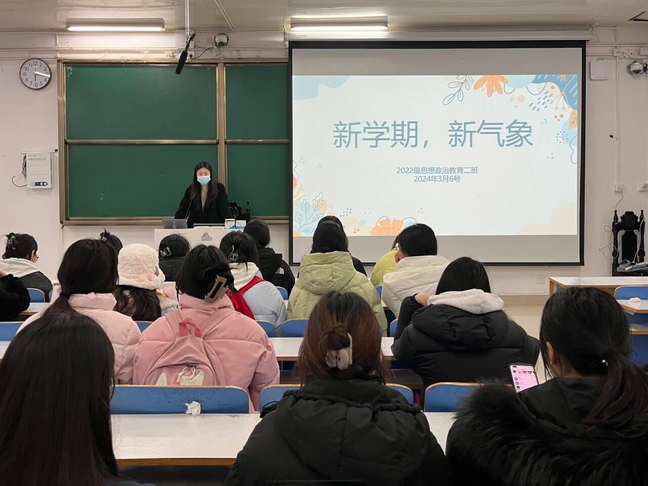 为扎实做好新学期学生教育工作,引导同学们尽快融入新学期生活,3月6日下午,sjb世俱杯网站2022级思想政治教育二班在社科楼514教室召开“新学期,新气象”主题班会。世俱杯官网2022级思想政治教育二班全体成员共同参与此次班会。会议由班主任杨春艳主持。