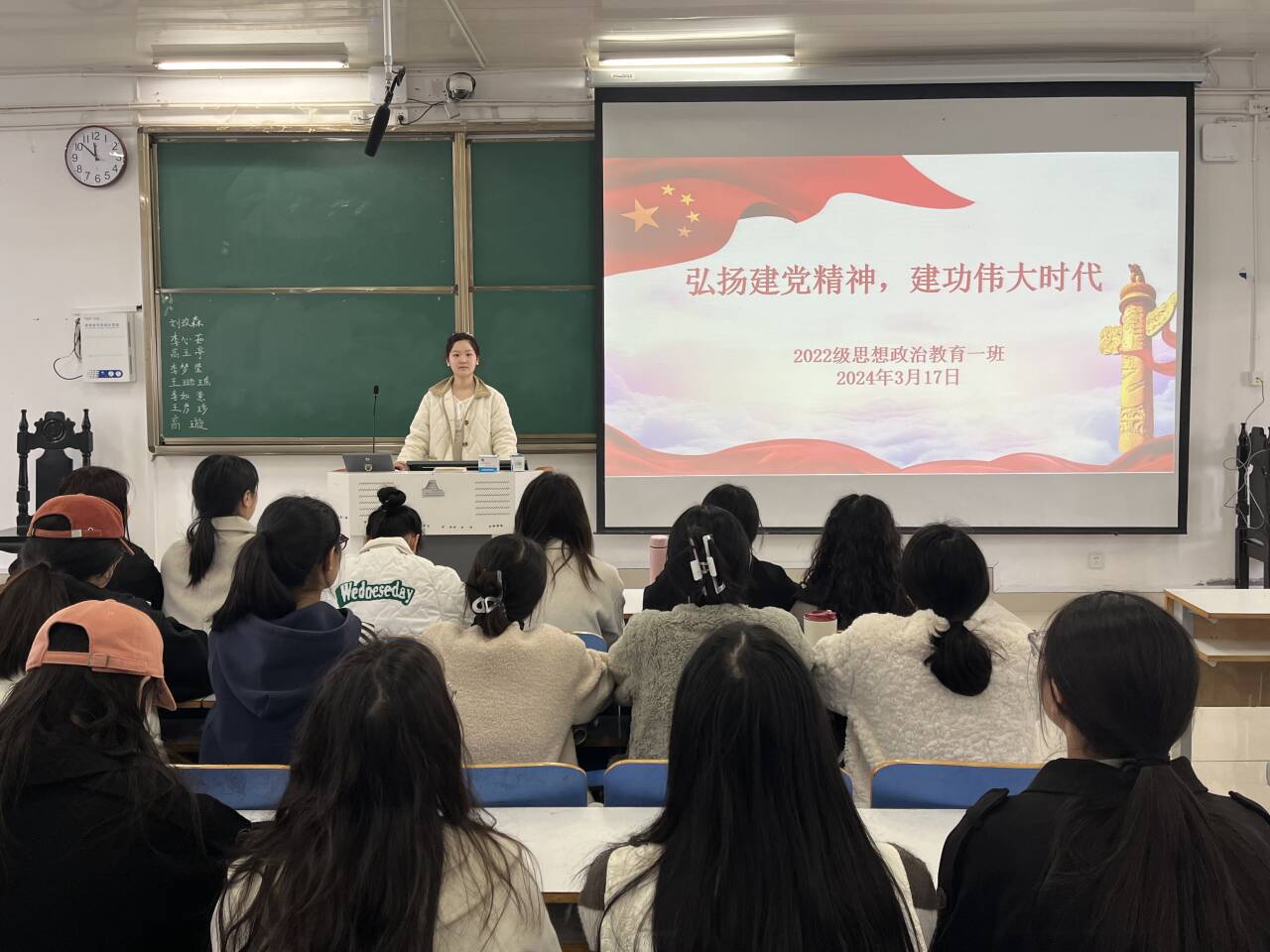 3月17日上午,sjb世俱杯网站2022级思想政治教育一班在社科楼514教室召开“弘扬建党精神,建功伟大时代”主题团课,世俱杯官网2022级思想政治教育一班全体同学共同参与本次团课,团课由团支书李佳茹主持。