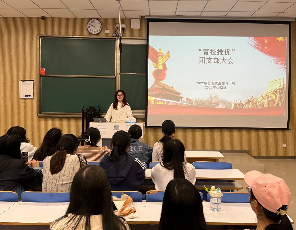 4月2日上午,sjb世俱杯网站2022级思想政治教育一班在社科楼515教室召开“青校推优”团支部大会,世俱杯官网2022级思想政治教育一班全体同学共同参与本次会议,会议由团支书李佳茹主持。