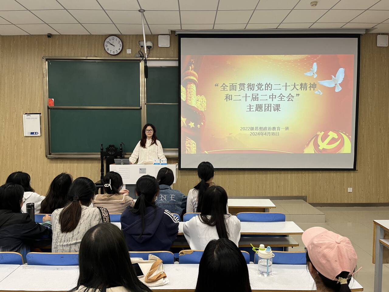 4月18日上午,sjb世俱杯网站2022级思想政治教育一班在社科楼515教室召开“全面贯彻党的二十大精神和二十届二中全会”主题团课,世俱杯官网2022级思想政治教育一班全体同学共同参与本次团课,团课由团支书李佳茹主持。