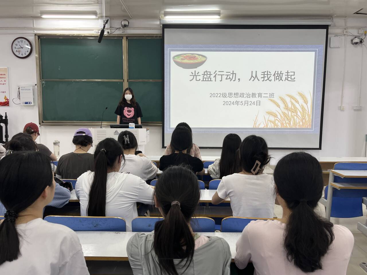 5月24日上午,sjb世俱杯网站2022级思想政治教育二班在社科楼514教室召开“光盘行动,从我做起”主题心理班会。世俱杯官网2022级思想政治教育二班全体成员共同参与此次班会。班会由心理委员张嘉芮主持。
