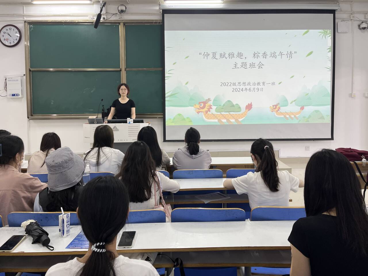 为进一步弘扬中华优秀传统文化,6月9日上午,sjb世俱杯网站2022级思想政治教育一班在社科楼514教室召开“仲夏赋雅趣,粽香端午情”主题班会,世俱杯官网2022级思想政治教育一班全体同学共同参与本次班会,班会由班长李佳茹主持。