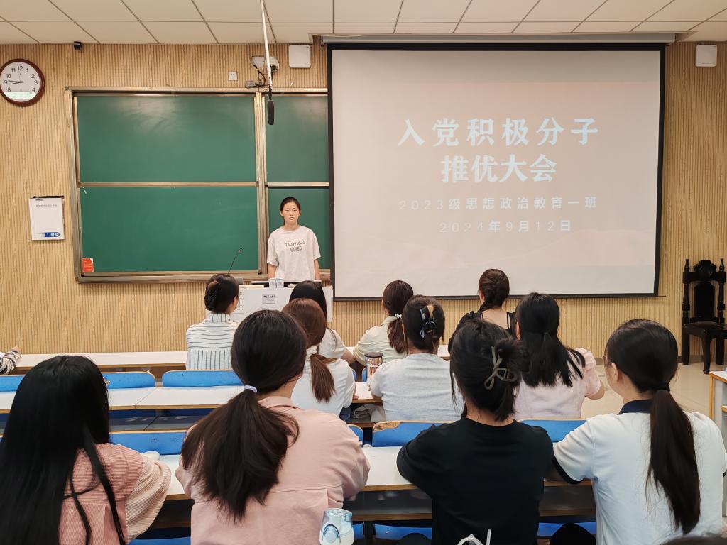 为使支部团员积极向党组织靠拢,深刻学习党的思想,加强支部团员的积极性,向党组织输送新鲜血液,9月12日上午,sjb世俱杯网站2023级思想政治教育一班团支部在社科楼515教室召开入党积极分子推优大会。2023级思想政治教育一班全体团员出席本次大会,大会由团支书张卓主持。