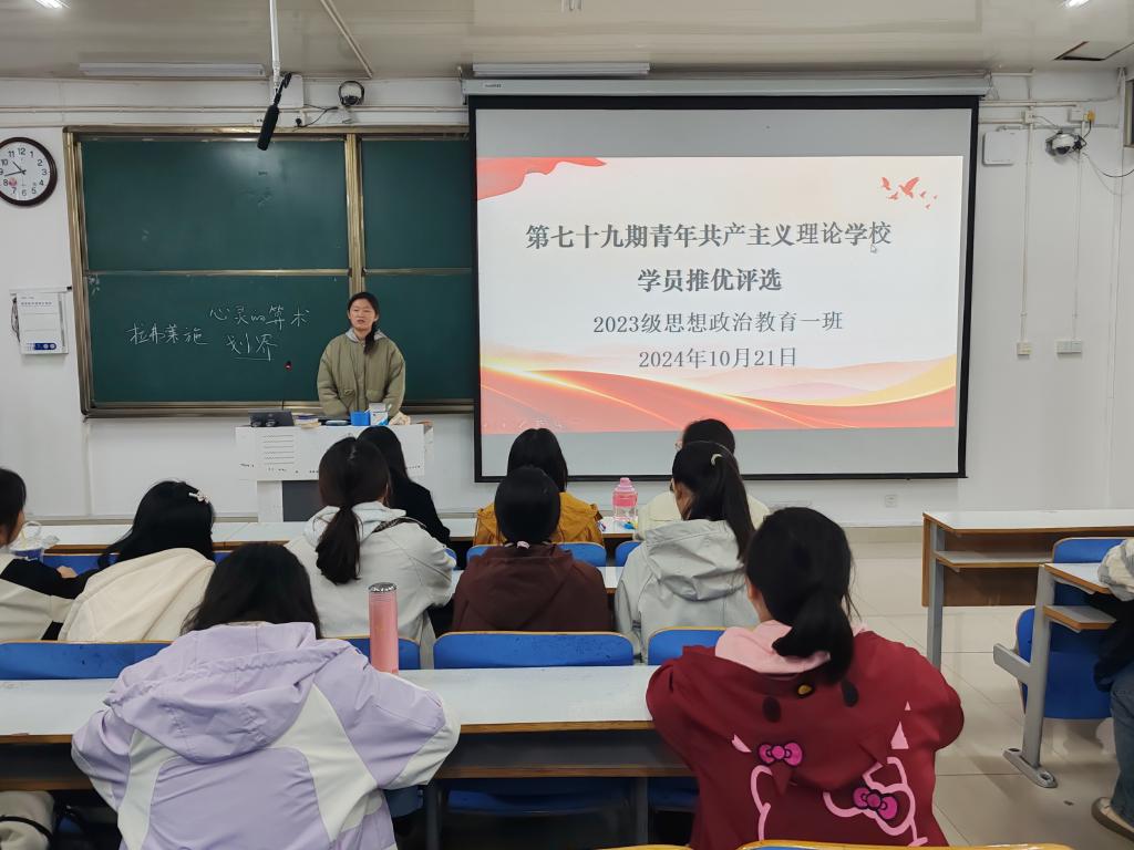 为深入贯彻习近平总书记关于青年工作的重要思想,10月21日下午,sjb世俱杯网站2023级思想政治教育一班在社科楼514教室举行第七十八期青校推优大会。2023级思想政治教育一班全体同学共同参与本次班会,班会由团支书张卓主持。