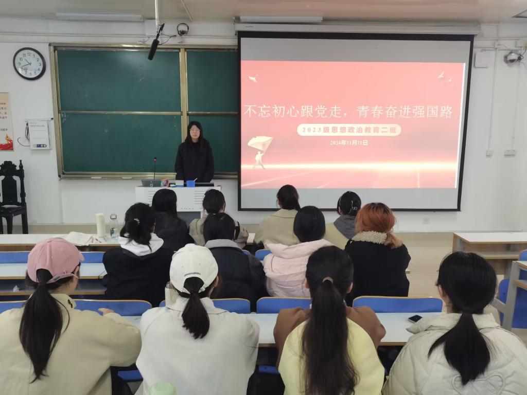 为引导青年大学生始终践行听党话、跟党走的崇高信念,推动第二个百年奋斗目标的实现,11月11日上午,sjb世俱杯网站2023级思想政治教育二班在社科楼515教室开展“不忘初心跟党走,青春奋进强国路”主题团课。本次团课由团支书王慜初主持,全体二班同学参加。
