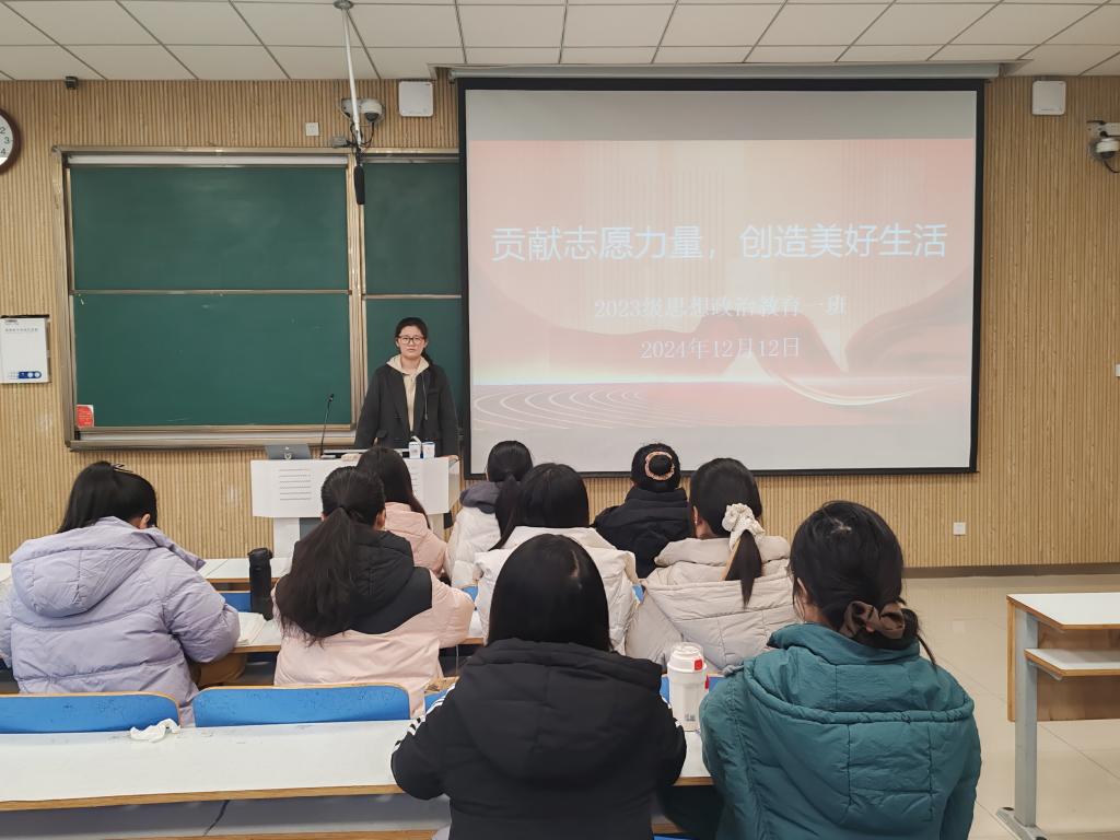 为弘扬志愿服务精神,强化我班学子的社会责任意识,12月12日上午,sjb世俱杯网站2023级思想政治教育一班在社科楼515教室召开“聚此国庆,与时偕行”主题团课。2023级思想政治教育一班全体同学参与本次团课,团课由团支书张卓主持。