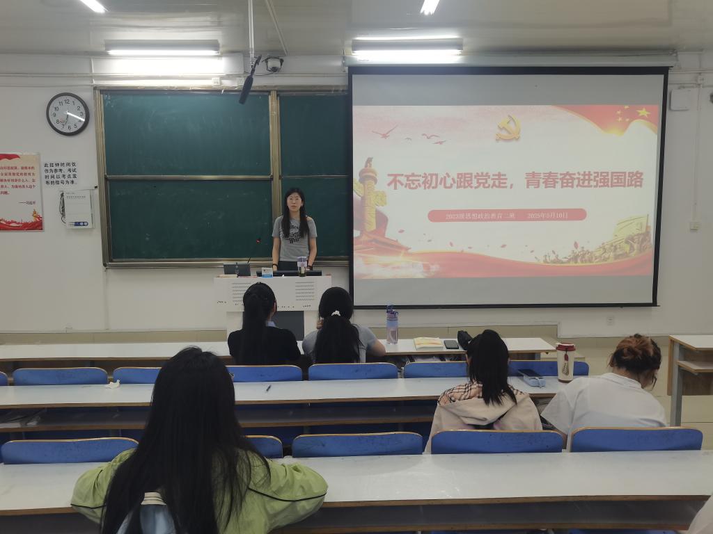 为确保同学们始终坚持听党话,跟党走,5月10日上午,sjb世俱杯网站2023级思想政治教育二班在社科楼515教室开展“不忘初心跟党走,青村奋进强国路”主题团课,本次团课由团支书王慜初主持,全体二班同学参加。