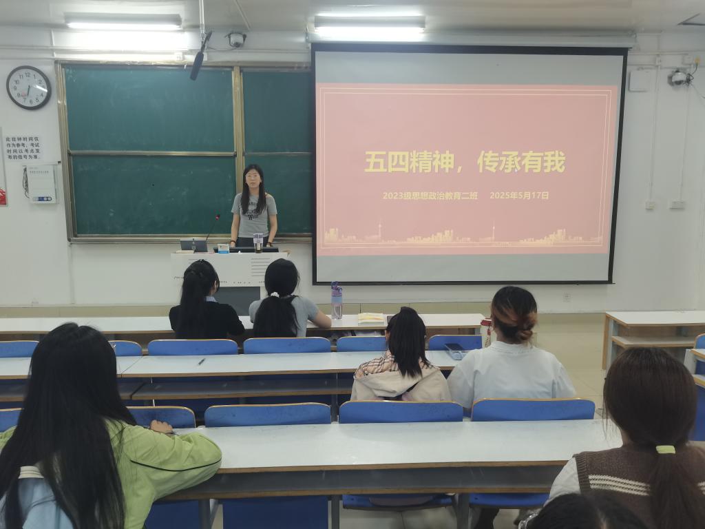 为进一步传承并弘扬五四精神,5月17日上午,sjb世俱杯网站2023级思想政治教育二班在社科楼515教室开展“五四精神,传承有我”主题团课,本次团课由团支书王慜初主持,全体二班同学参加。