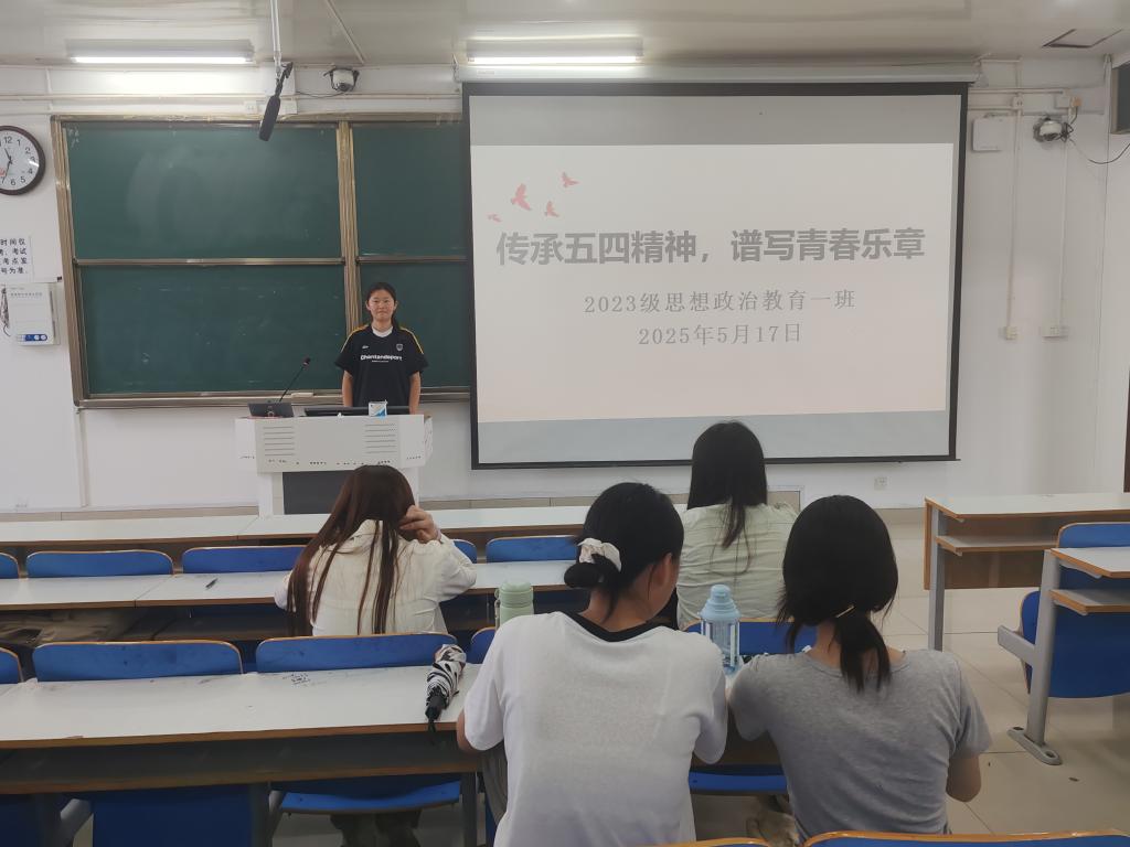 为进一步弘扬五四精神,激励和引导我班团员加强党团知识学习,5月17日下午,sjb世俱杯网站2023级思想政治教育一班在社科楼514教室召开“传五四火炬,洒青春热血”主题团课。世俱杯官网2023级思想政治教育一班全体同学共同参与本次团课,团课由团支书张卓主持。