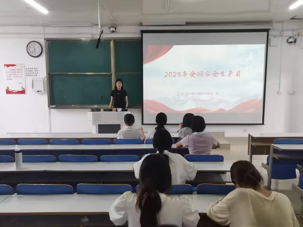 班会肇始,王慜初借助PPT的形式向同学们科普了何为安全生产月,以及举办安全生产日的目的。她指出,安全生产月是经国务院批准,自1980年起在全国开展的安全生产宣传教育活动,旨在增强全民安全意识和应急意识,提升公众安全素质,提高防灾减灾救灾能力。王慜初指出,2025年6月是第24个全国“安全生产月”,主题是“人人讲安全、个个会应急——查找身边安全隐患”,该活动通过宣传教育、检查督查等方式,普及安全知识,推广安全技术,提升安全管理水平,对于维护社会安全、保护人民财产安全具有重要意义。王慜初呼吁同学们积极学习全国安全生产月相关知识,积极参加安全生产月知识竞赛,重视身边的安全问题。