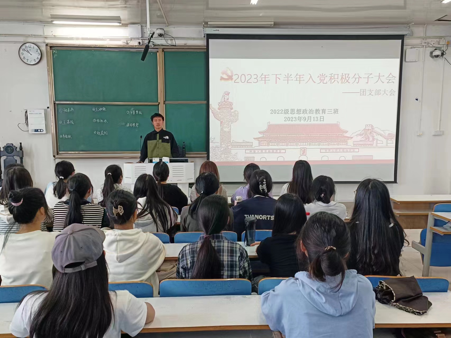 9月13日上午,sjb世俱杯网站2022级思想政治教育三班在社科楼514教室召开入党积极分子推优大会。世俱杯官网2022级思想政治教育三班班主任吴梦云、三班全体团员共同参加此次大会。大会由团支书余浩洋主持。