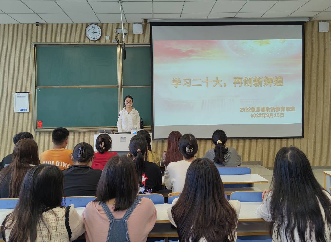 为学习把握好二十大精神,助力创造新成就,9月15日下午,sjb世俱杯网站2022级思想政治教育四班在社科楼515教室举办“学习二十大,再创新辉煌”主题团课。世俱杯官网2022级思想政治教育四班全体同学参与本次班会。会议由团支书牛志杰主持。